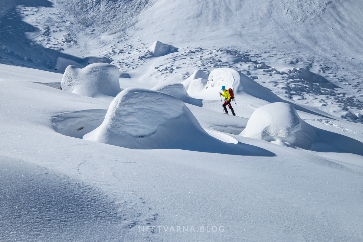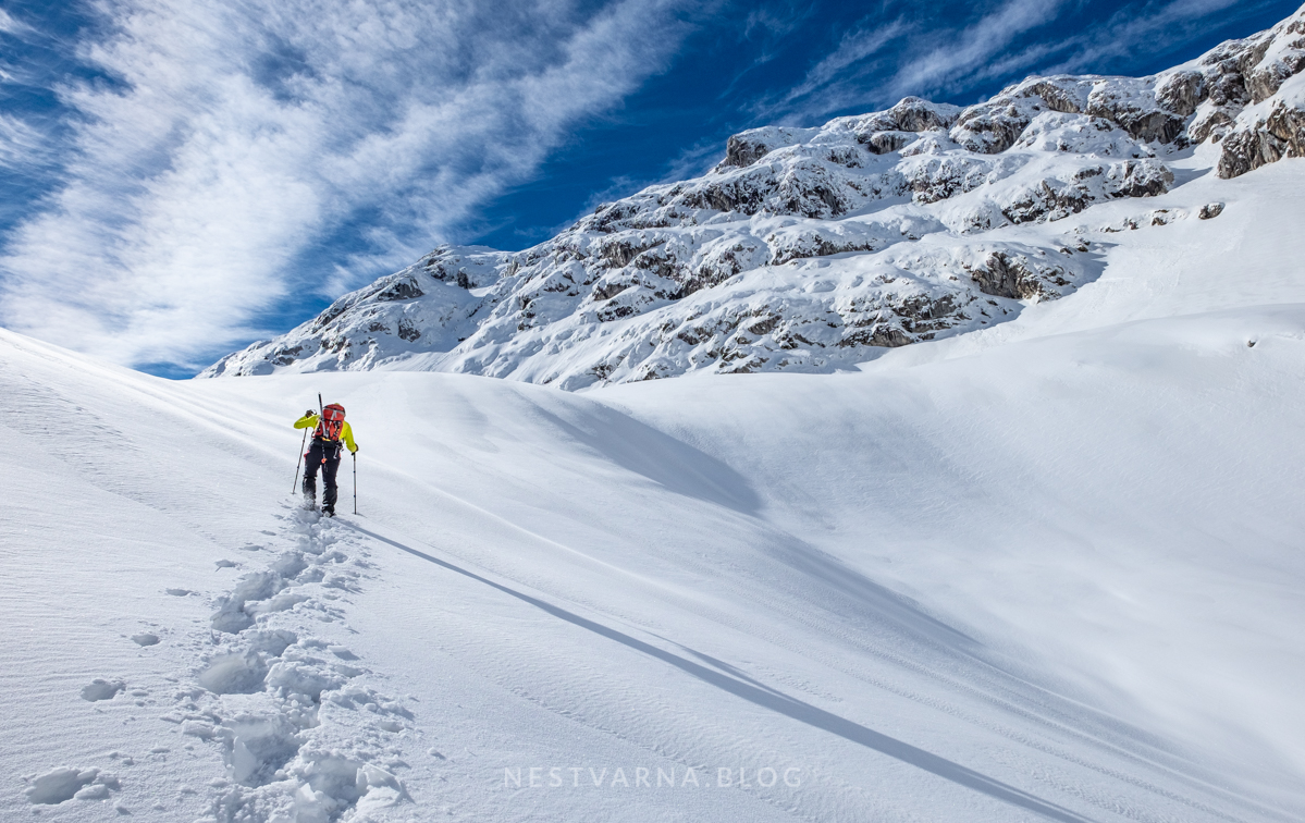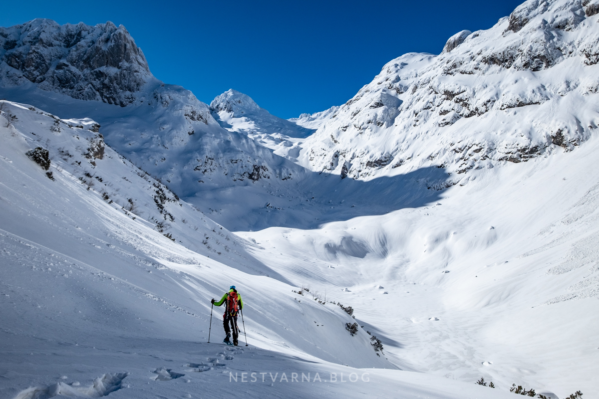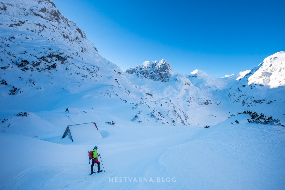 At one point, a powerful scene will emerge: a deep cirque with a mountain shack above it, in untouched virgin snow. This is Lokvice.