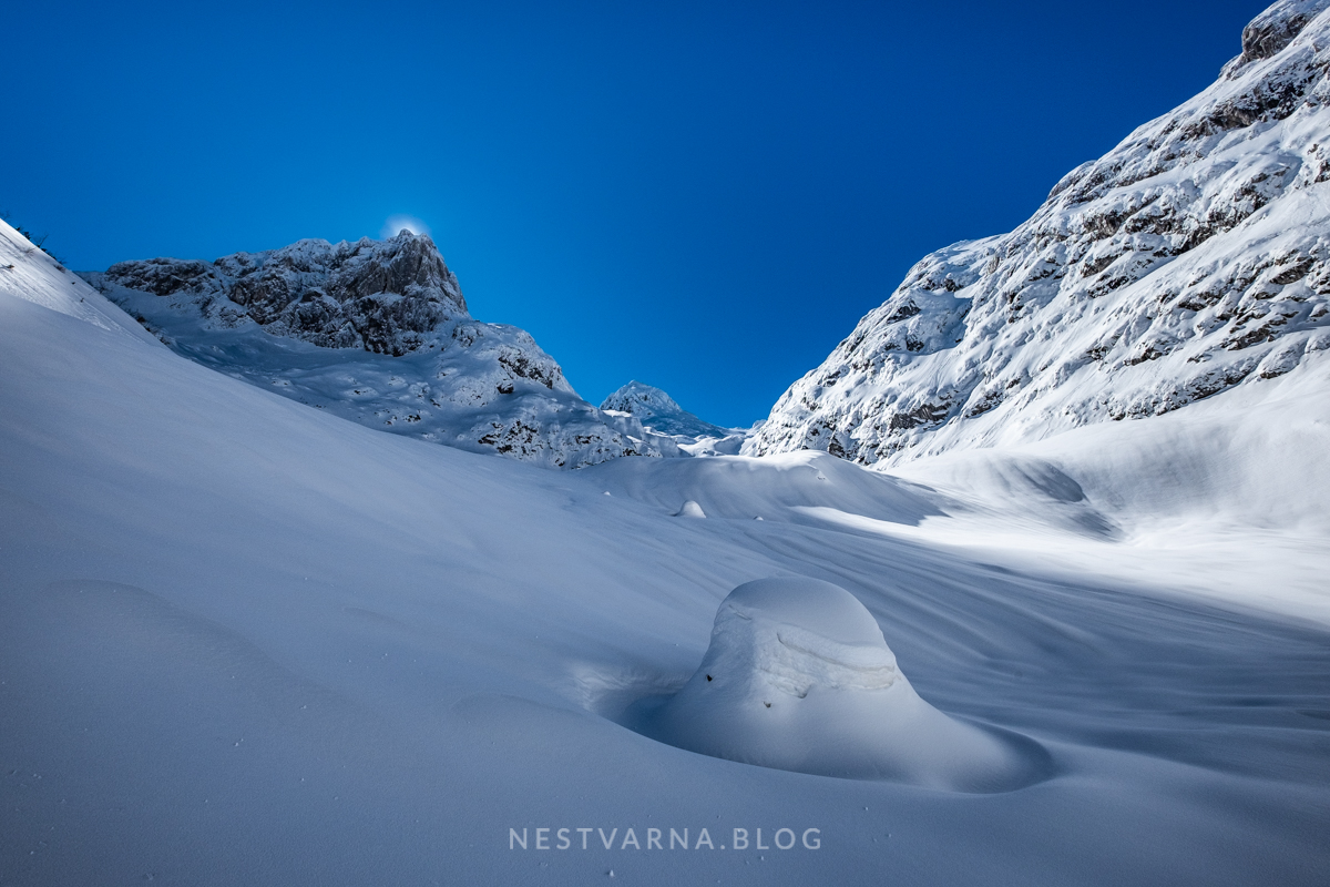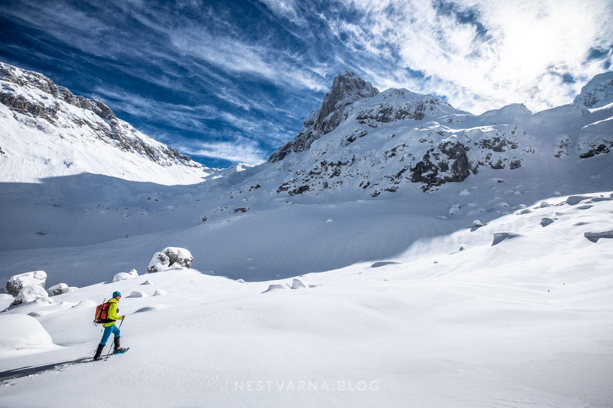 Pace is of course, much slower during winter, when Lokvice represents a “legitimate” mountaineering goal, in conditions of fresh snowfall. Between three and four hours will be required to hike from the lake ramp to the bottom of the glacier cirque of Lokvice.