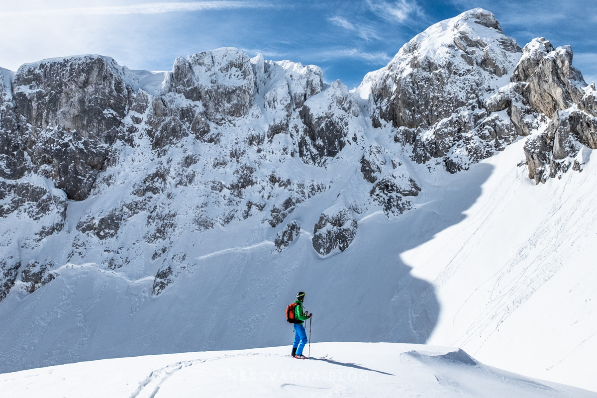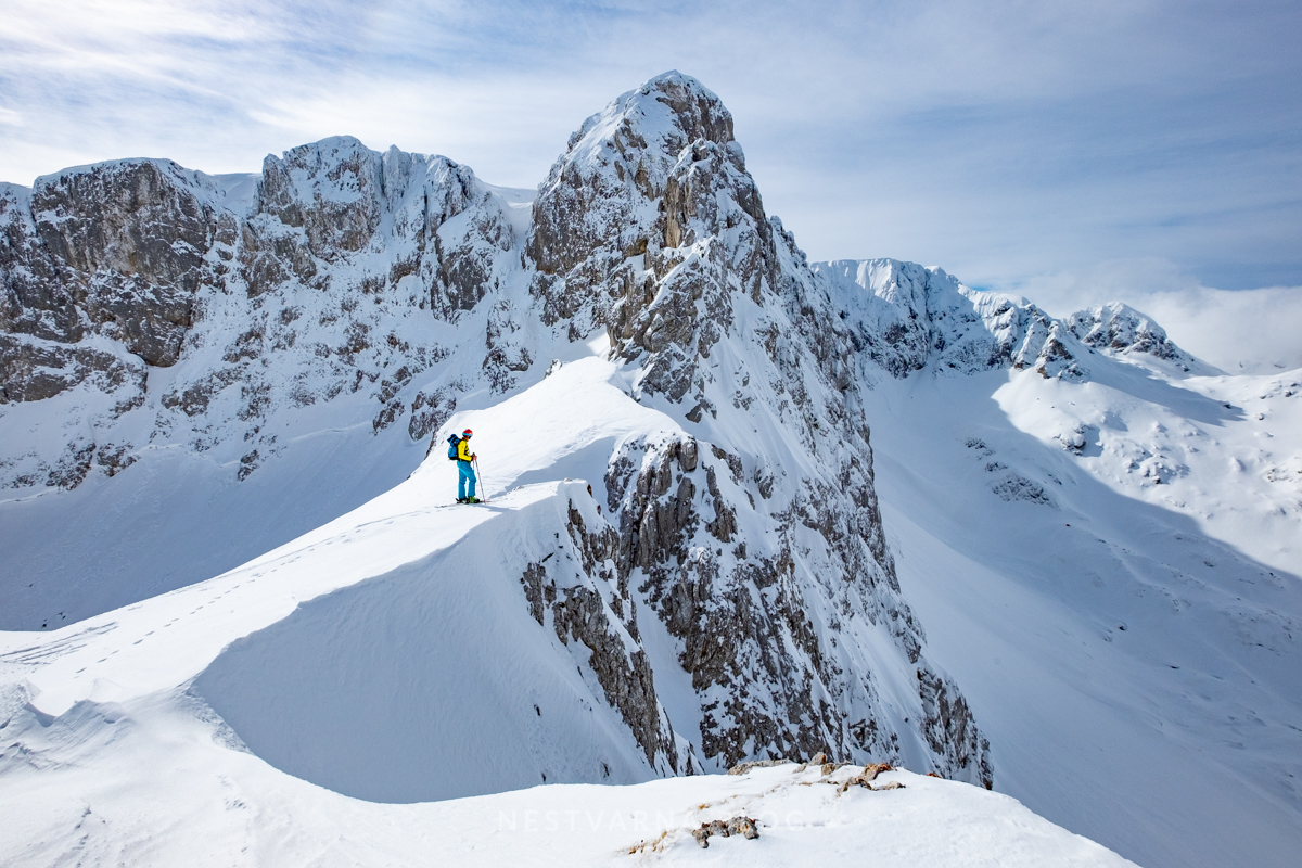 For the morning after before heading back home, we went for a brief ski-tour along the ridge on top of Durmitor’s ski resort. Since we were based in fantastic wooden homes of Family Farm, only 250m from the small resort, we departed on skis literally out of bedroom.