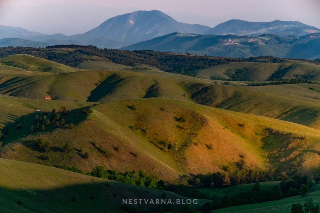 From Rior onwards to Mali Rior (721m) starts the most attractive part of the trail. “The soft hills symphony” is how I call the amazing views over picturesque rolling pastures to the south, with mountain Kablar acting as a guard on horizont.