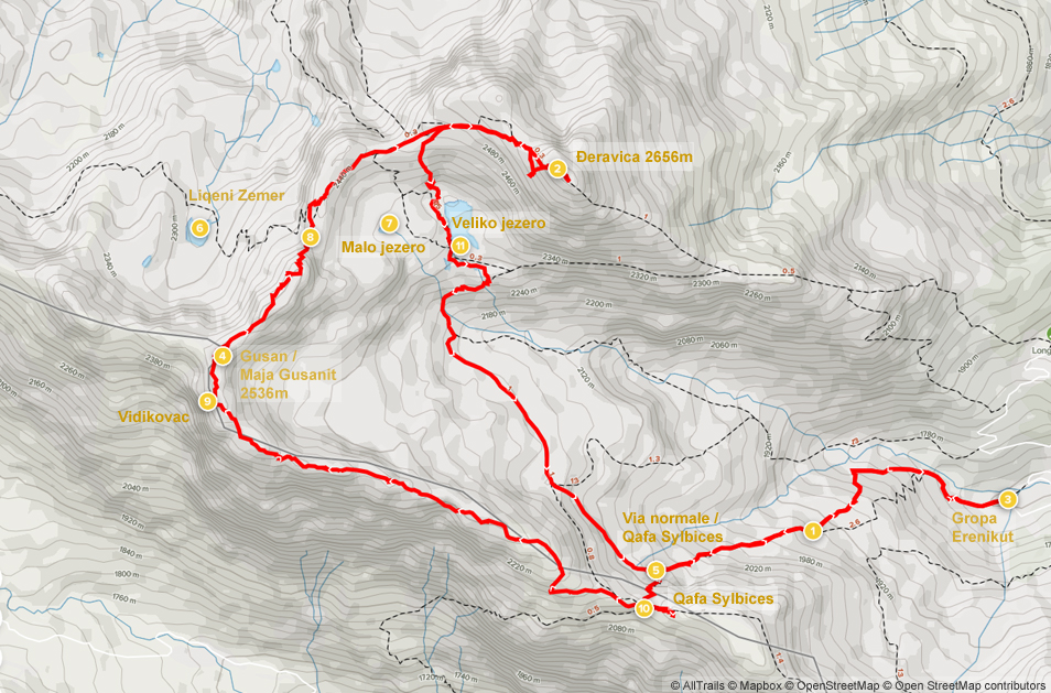 Wikiloc: Gropa Erenikut – Qafa Sylbices – Gusan – Đeravica – Veliko jezero – Gropa Erenikut.
