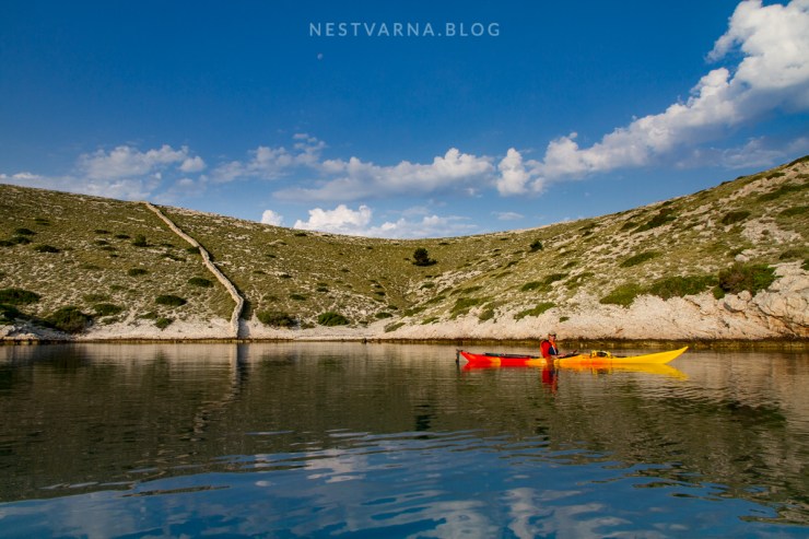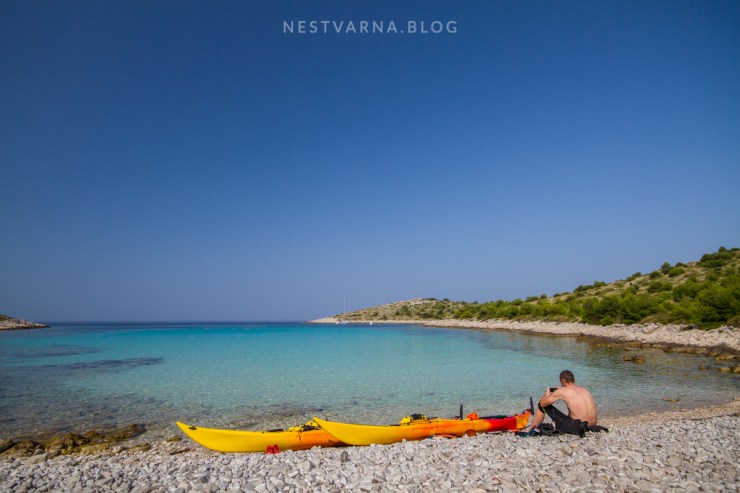 Iskrcali smo se na samo 5 od njih: Levrnaka, Mana, Panitula, Lavsa i Kornat. Oštro kamenje i nepristupačan teren na većini mesta ne dozvoljavaju siguran pristan morskom kajaku.