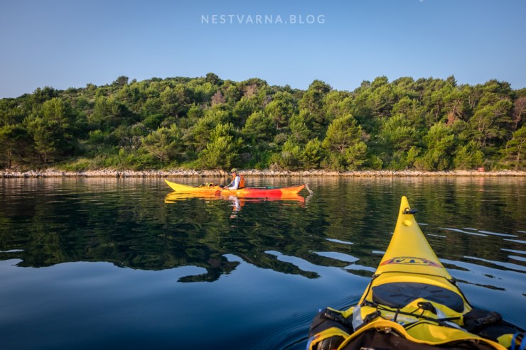 Da bi ga osetili u potpunosti, Kornate obilazimo morskim kajacima. Moj saputnik je Aleksandar Bzdušok, kolega triatlonac, avanturista i iskusni kajakaš.