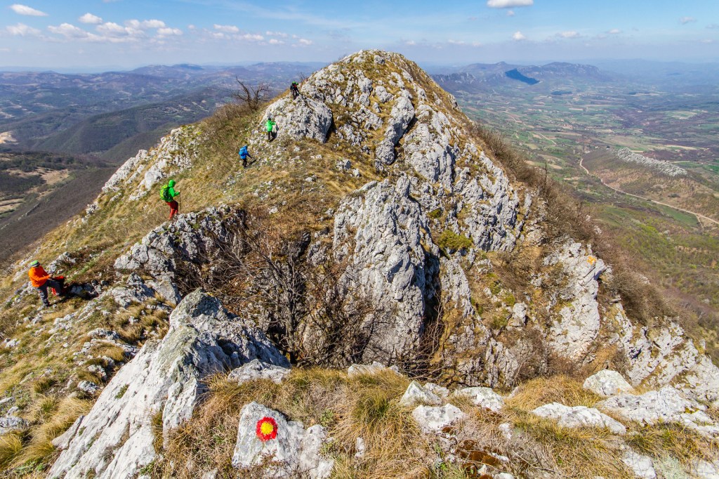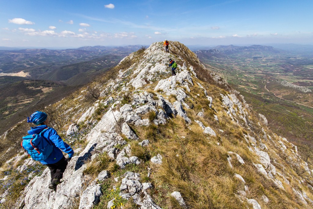 Ali kad mu ideš uz dlaku, iz pravca Gornjana… vrlo je preke naravi. Na stranu to što je potrebno uložiti malo više napora do grebena, jer vas ne vodi samo šumska staza, kao sa one druge strane, već i miks zemlje i krečnjaka i sipara koji se roni; već je i sam greben od samog početka vrlo surov.