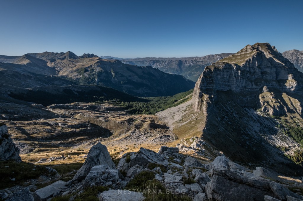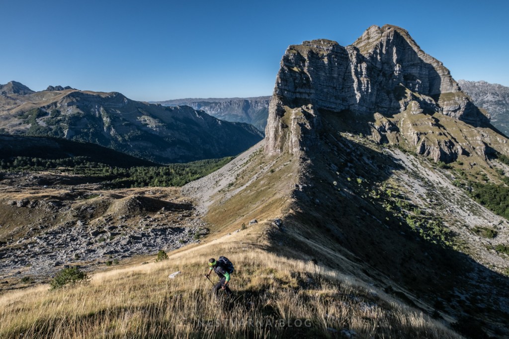 Kada se pažljivo, korak po korak, siđe kroz travnati kuloar sa Kokošije glave, može malo da se odahne. Teren polako popušta na eksponiranosti, dok na samom grebenu sada preovlađuju krupni komadi stena, pouzdaniji za oslonac i prelazak.