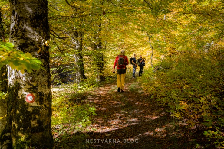 Markirana staza vodi kroz šumu, a potom i preko livada napuštenog katuna Jezera.