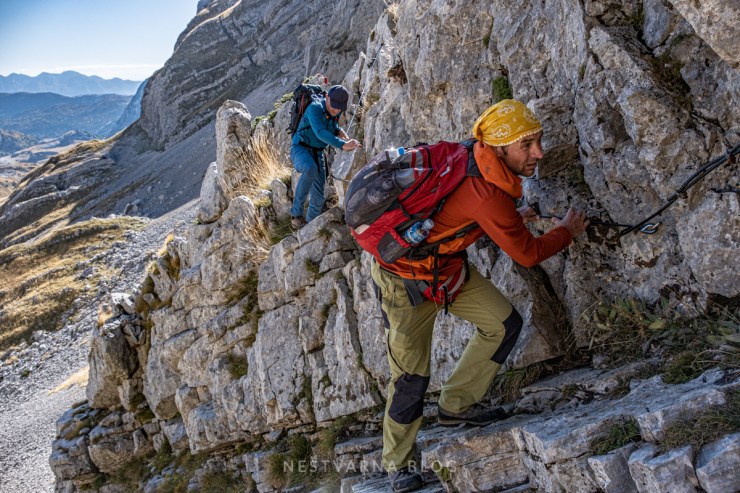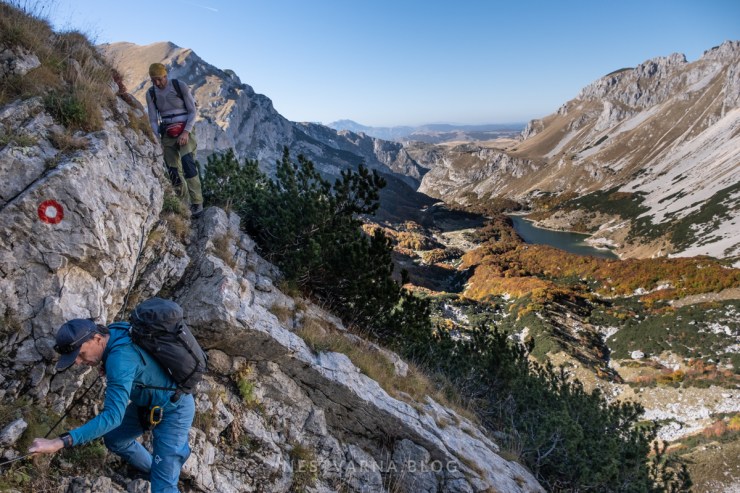 Silazak sa prevoja je takođe tehnički zahtevan ali srećom osunčan i dobro obezbeđen sajlama.