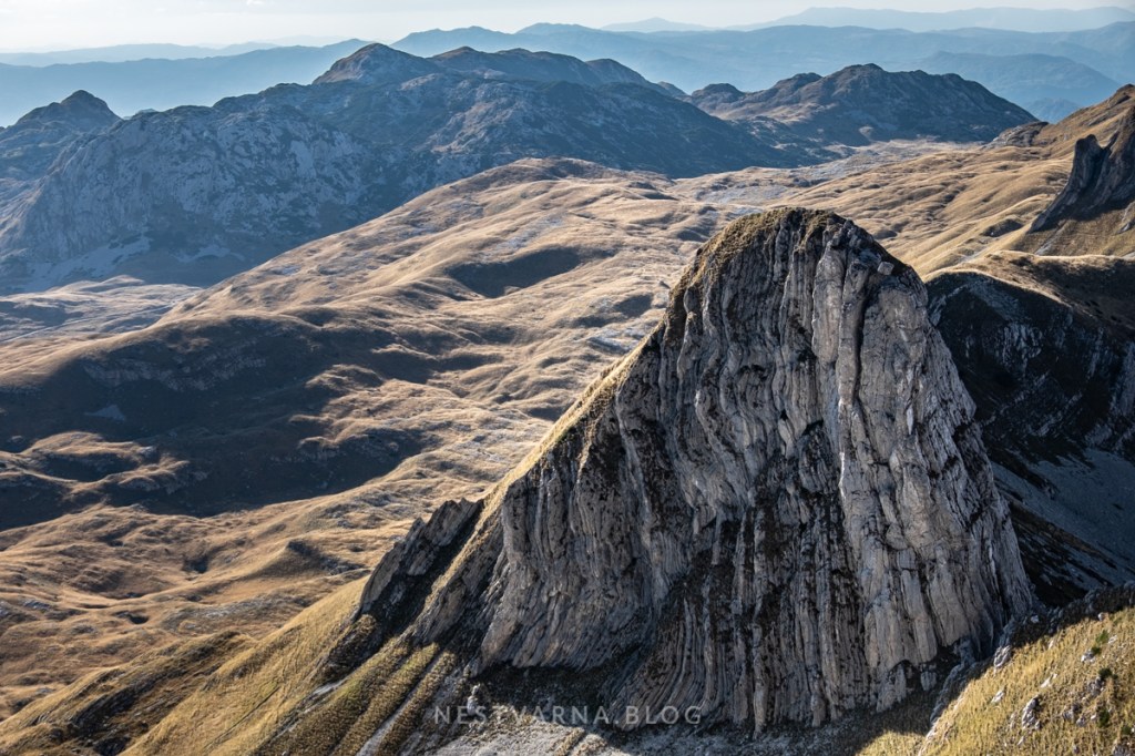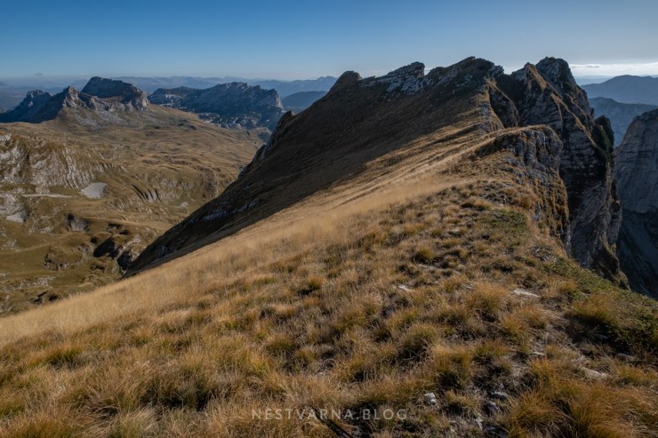Sredina oktobra, miholjsko leto na planini. Možda bi poneki oblak dodatno dramatizovao prizore, ali pod kristalno plavim nebom i jakim senkama, konture planine su još izraženije. Durmitor se 12.10.2019. ukazao u punoj oštrini i jasnoći.