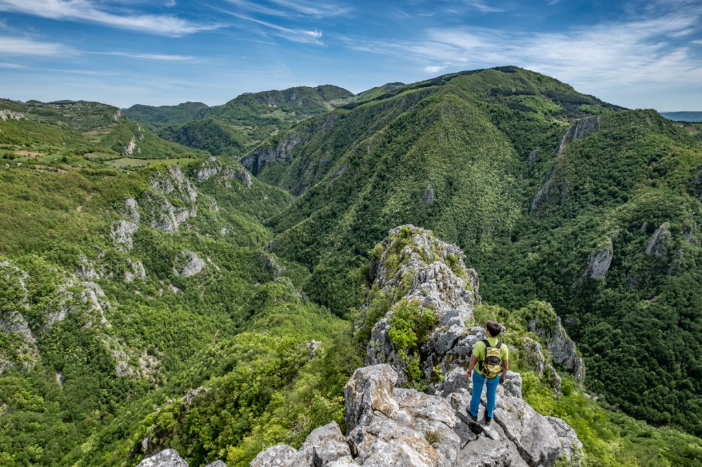 Sa zemlje, iz kanjona, je teško sagledati ovaj impozantan prostor u jednom kadru. Upravo takvu perspektivu pruža nazupčena ivica uzvišenja Boškovac – još jedno istraživačko čedo planinara Gorana Stamenkovića.