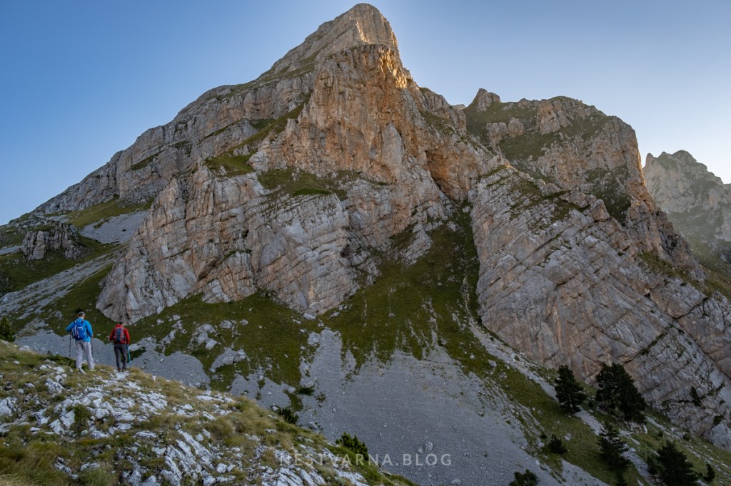 Mana kompaktnosti i jednostavnosti uspona sa albanske strane je sporo smenjivanje scenografije. Tako to obično biva, matematika je prosta: prolasci kroz cirkove, udoline i prevoje su atraktivni za oko, ali svaki put kad neprimetno prevalimo nadole, moraćemo ponovo da se dignemo gore. Ovde je suprotno uspon strogo linearan, te nema gubljenja visine.