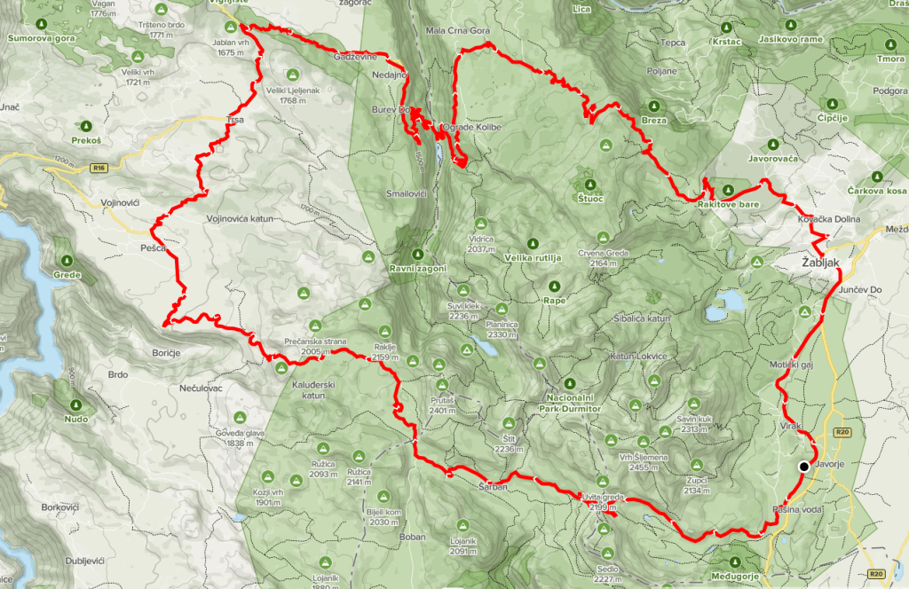 Ako je sportski osećaj ispunjenog cilja dominantna emocija – vožnja bicikla u dugom junskom danu bi bila pun pogodak. Durmitorski prsten je dug 84 kilometra sa 2000m ukupne visinske razlike.