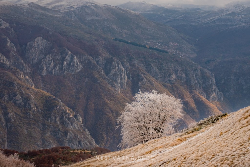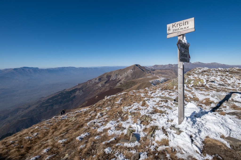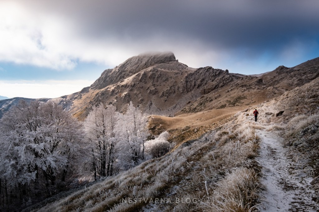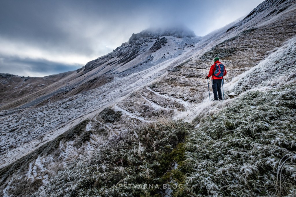 Prognoza je obećavala dosta sunca, ali je prethodnog dana preko Balkana ipak prošao slab ciklon koji je doneo i nešto padavina, taman da omađija prizore. Na visini od 1800m prestaje šumski pojas. Mraz je potrefio sličnu visinu – a kako lišće još nije u potpunosti otpalo, Krčin nas je dočekao “season blend” koktelom dobrodošlice jeseni i zime.
