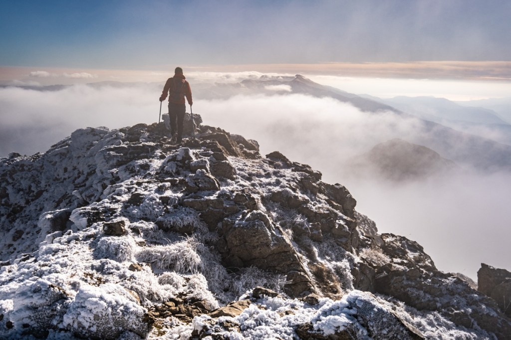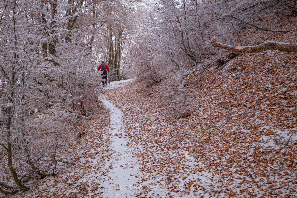 U Bituše smo se pojavili čitav sat pre svitanja. S obzirom da uspon započinje dosta nisko, sa svega 1020m nadmorske, utabanu šumsku stazu smo u njenom početnom delu odradili po mraku, kako bi što više vremena ostalo za osunčani greben. To i jeste poenta planinarenja u ova doba godine: Planinski grebeni su u novembru puno prijatnija mesta od vlažnih i manje bezbednih severnih strana u strmijim masivima.