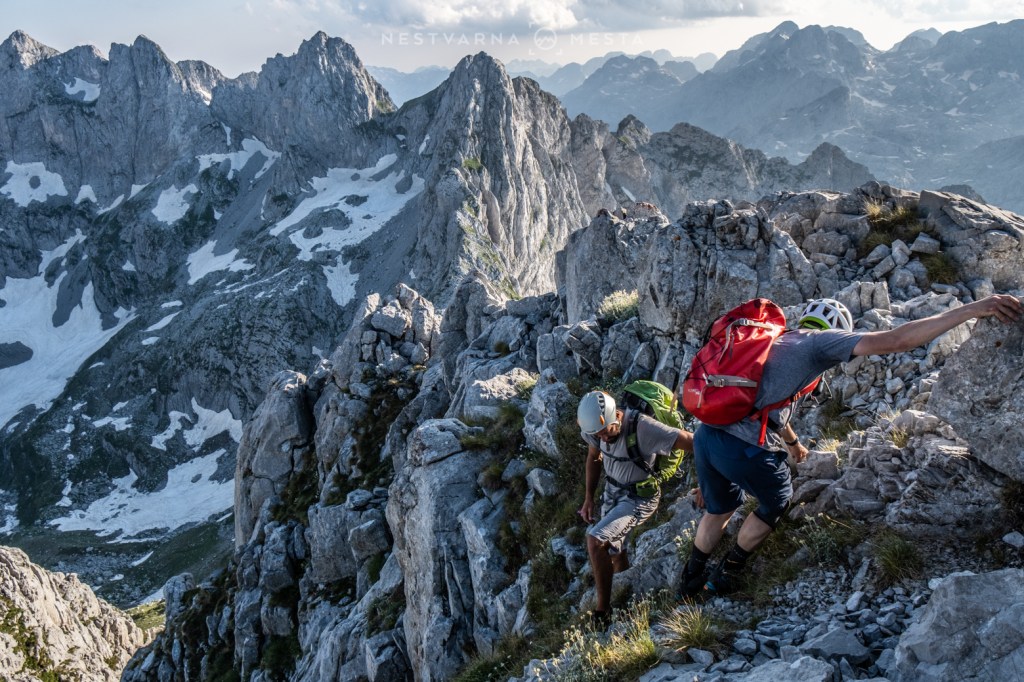 Za sam izlazak na stenoviti vrh potrebno je savladati završni kuloar. Tu smo zastali pre četiri godine, prilikom mog prvog pokušaja. U odsustvu markacija i .gpx treka nismo potrefili pravi kuloar. Sada smo ovde u pratnji sjajnog Esada Redžematovića iz Plava, našeg zimskog turno ski vodiča na Bogićevici. Eso je pre samo par sedmica bio na istom mestu sa svojim mentorom, Ahmetom Rekovićem, vrhunskim poznavaocem Prokletija sa obe strane granice.