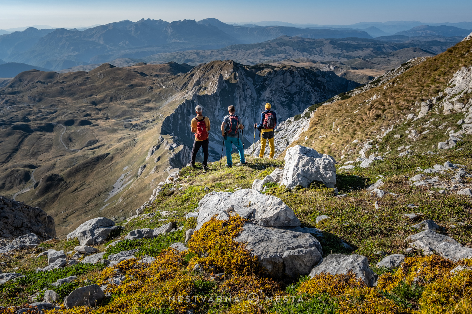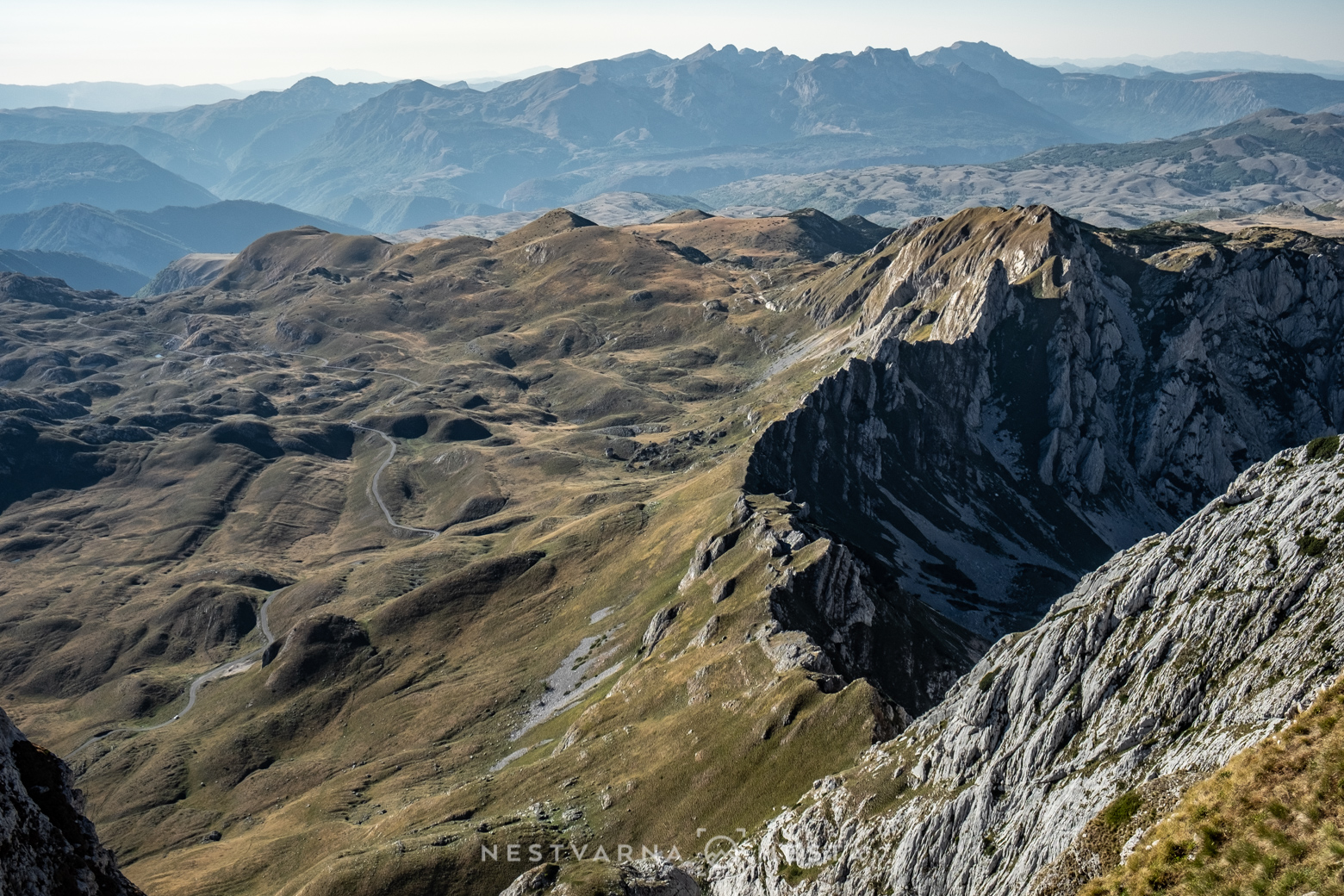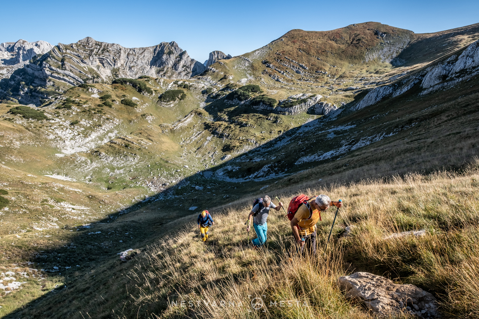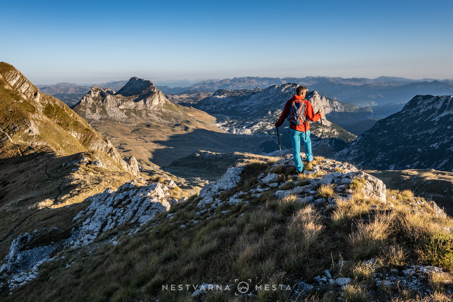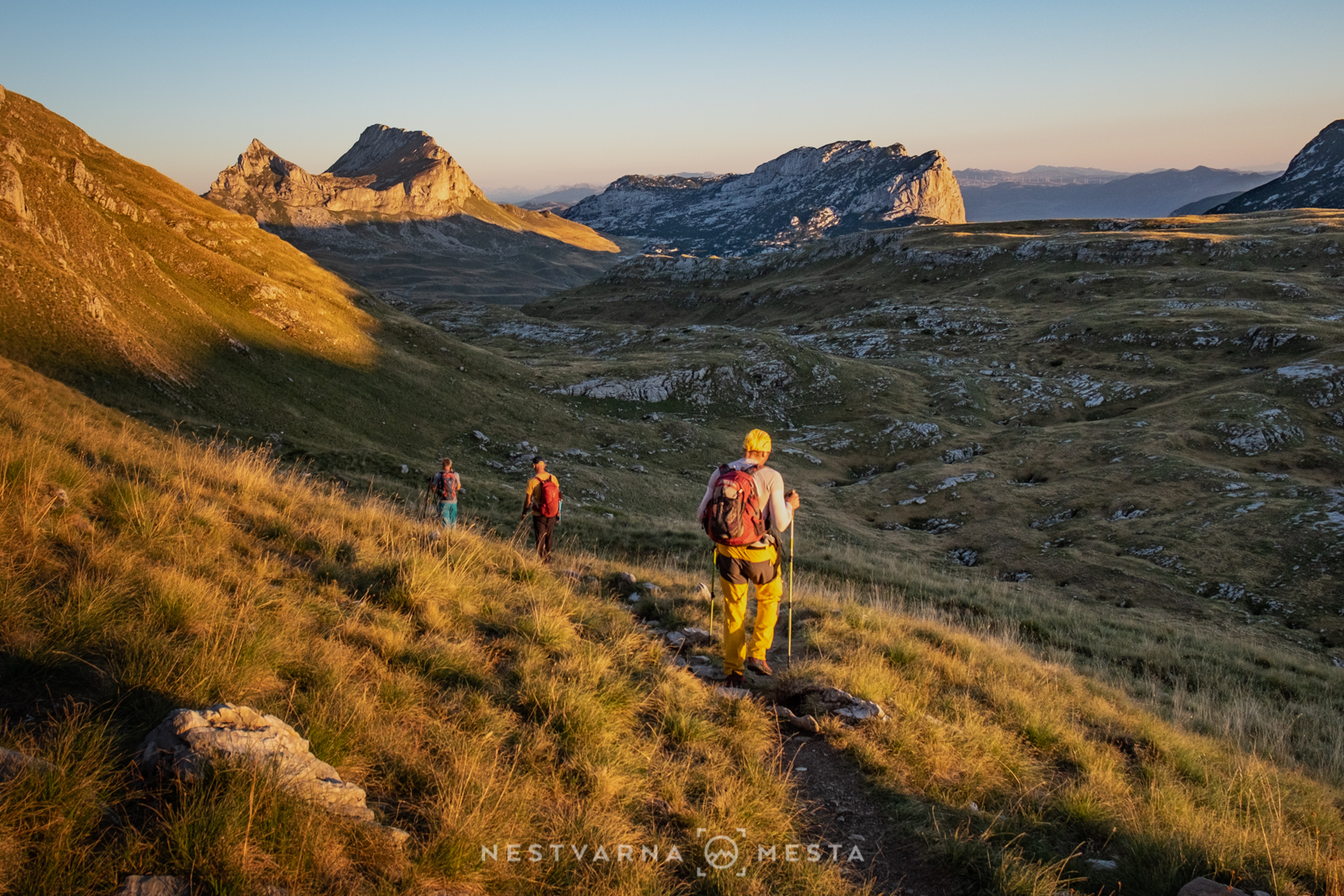 Na Prutašu uživamo u pogledima i u sporom ritmu krećemo dole. Svetlo se uskoro preliva preko Dobrog dola i grebena Škrčkog ždrijela: kulminacija prizora kakva samo na Durmitoru biti može…