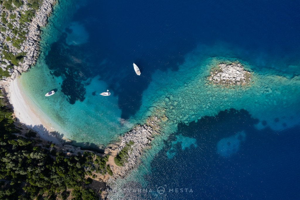 Uslov da se ovde ostane preko noći je mirno otvoreno more – a takav scenario se ne dešava često. Sreća prati odvažne (doduše uz pomoć aplikacije Windy) – u odsustvu vetra, prespavali smo u najpoznatijoj uvali istočnog Sredozemlja.