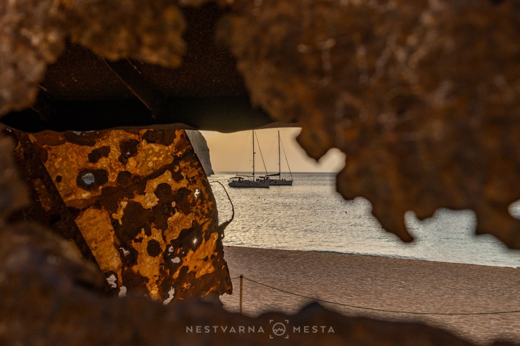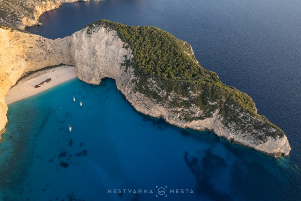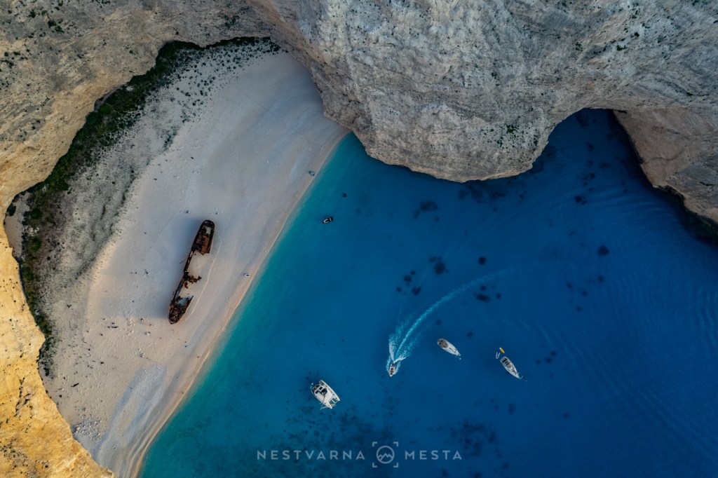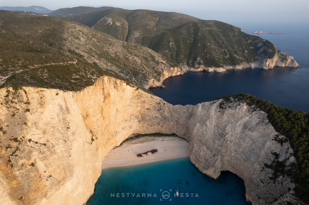 Zapadni vetrovi Jonskog mora su eonima unazad dobar deo svoje snage i abrazivne moći iskalili po severozapadnoj strani ostrva Zakintos. Da stvar bude još luđa, početkom osamdesetih godina prošlog veka, ovde se nasukao i švercerski brod.