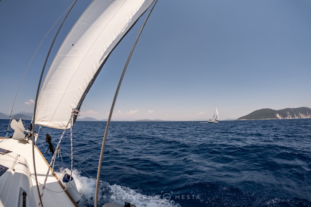 Naredno jutro je taman bilo dovoljno za dodatno fotkanje i skori beg sa plaže, pre naredne invazije. I vetar je ponovo okrenuo na zapad – ne mogu da verujem! imali smo slot odsustva zapada od 24 sata i iskoristili smo ga. Sada je bila prava prilika da se rašire jedra i isključi motor. Eol nam je poslao Zefira i grabili smo ka Kefaloniji brzinom od 7-8 čvorova! Ni jedrenje u pravom smislu te reči nije izostalo u ovih sedam dana.