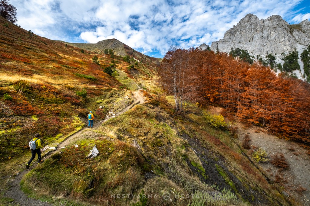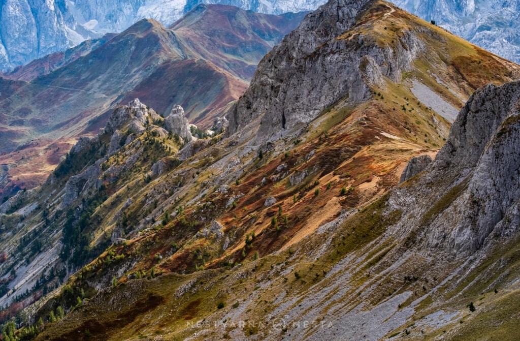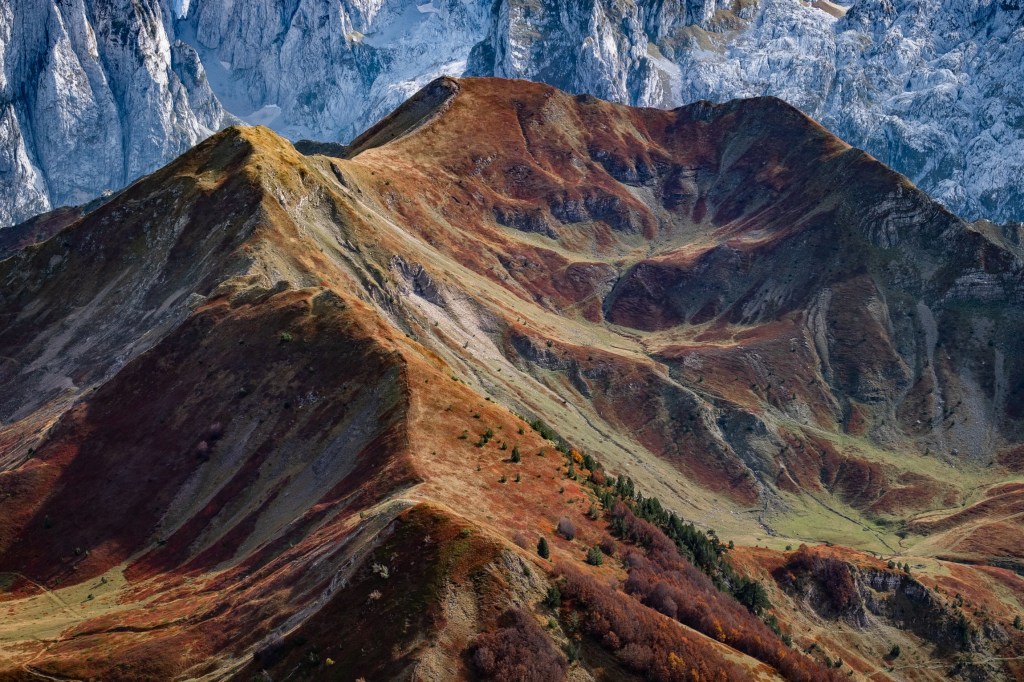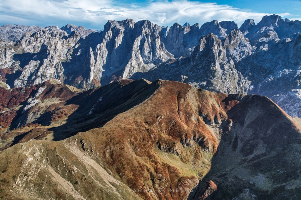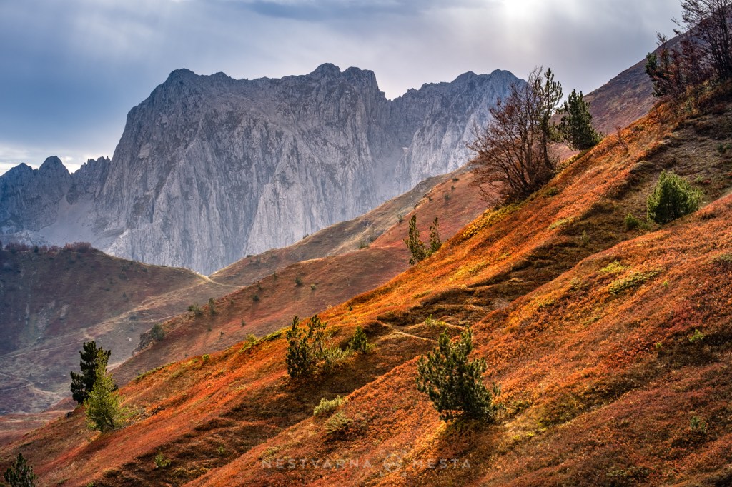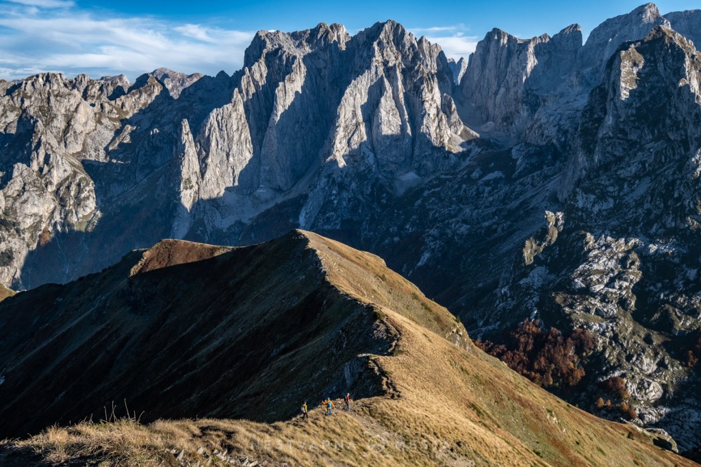 Jesen je čarobna ali izuzetno kratko traje – pogotovo u predelima iznad 1500m nadmorske visine. Da je trenutak pravi, saznao sam i od našeg turno ski “ambasadora” u Plavu – Esada Redžematovića. Zahvaljujući Esu i njegovoj Golf mašini, to jutro preskačemo inicijalni uspon i startujemo visoko – od porušene karaule u cirku Popadije, sa značajnih 1700m. Umesto monotonog linearnog uspona ka vrhu Trojana (kroz Trojanska vrata) plan je da odmah dohvatimo granični greben, na kome ćemo provesti veći deo dana.