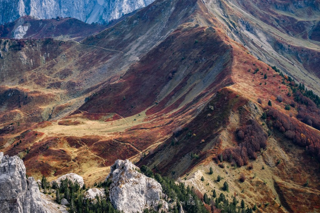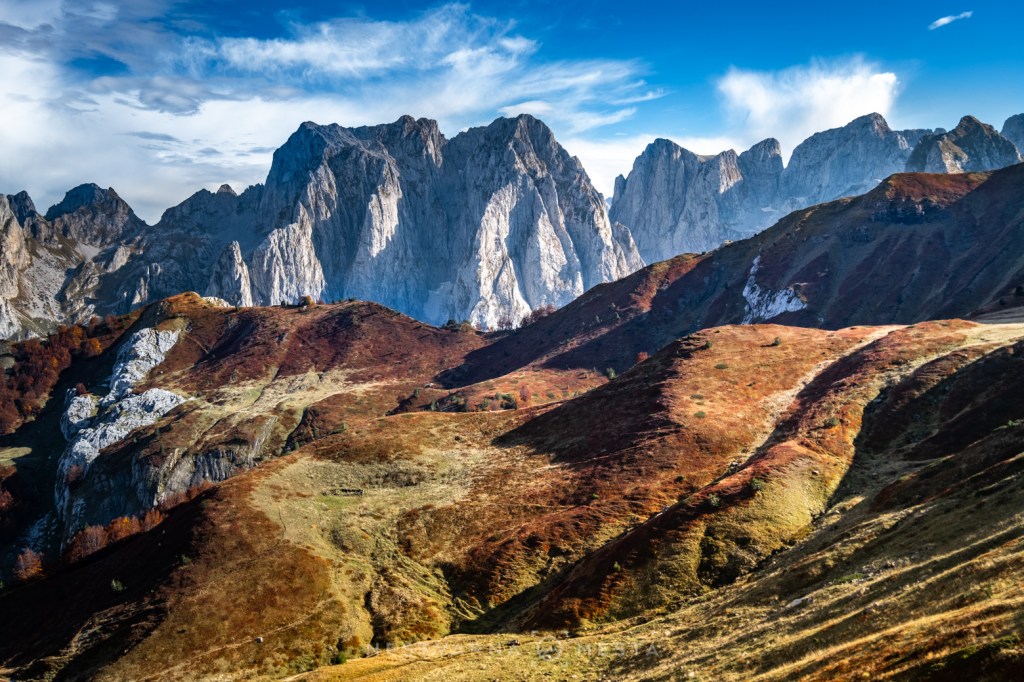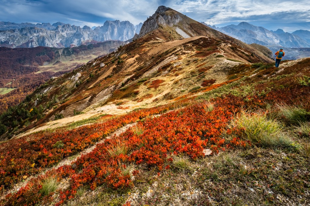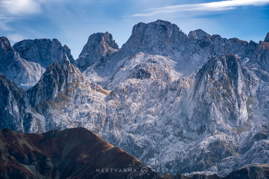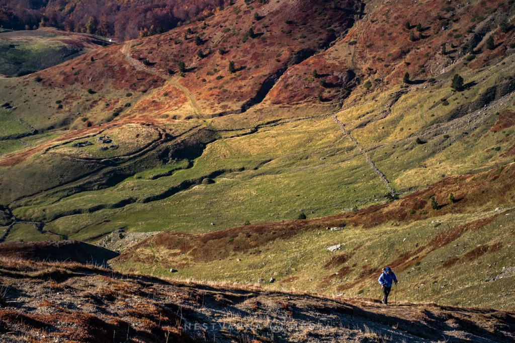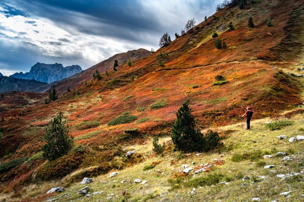 Jesen je čarobna ali izuzetno kratko traje – pogotovo u predelima iznad 1500m nadmorske visine. Da je trenutak pravi, saznao sam i od našeg turno ski “ambasadora” u Plavu – Esada Redžematovića. Zahvaljujući Esu i njegovoj Golf mašini, to jutro preskačemo inicijalni uspon i startujemo visoko – od porušene karaule u cirku Popadije, sa značajnih 1700m. Umesto monotonog linearnog uspona ka vrhu Trojana (kroz Trojanska vrata) plan je da odmah dohvatimo granični greben, na kome ćemo provesti veći deo dana.