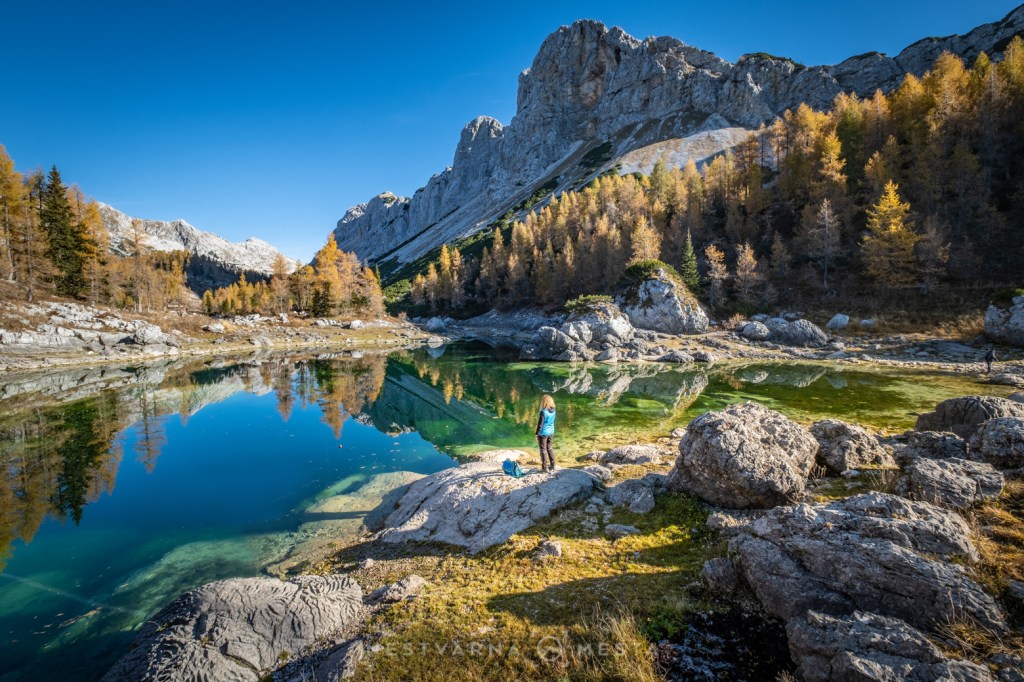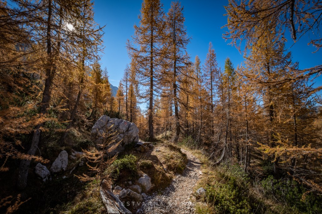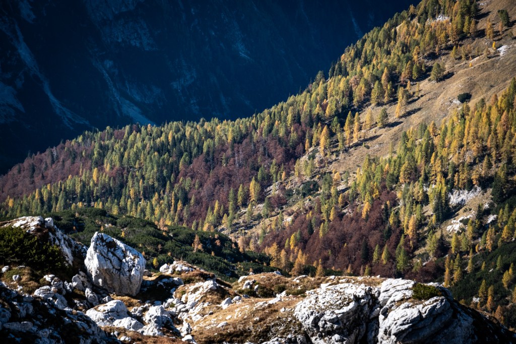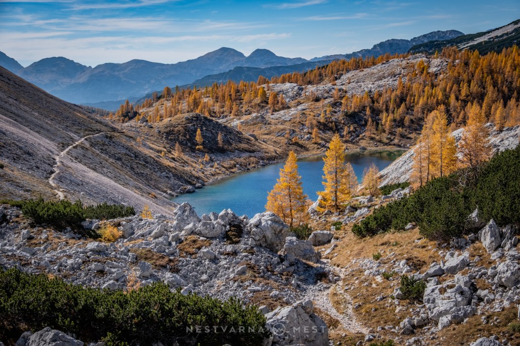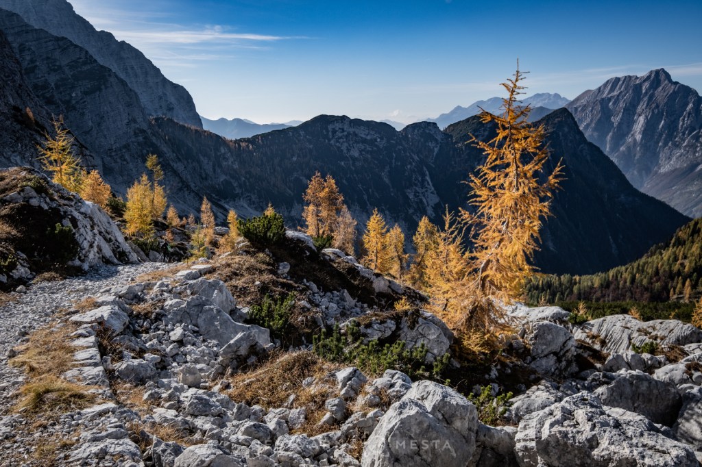 Dok iz Gorenjske prevaljujemo u Primorsku istorijsku pokrajinu, čudovite macesne ponovo ukrašavaju gorski pejzaž. Sa prevoja je započeo i konačni, maratonski silazak u dolinu. Sa 2071m spustićemo se u Trentu na samo 650m nadmorske, “čez Dol” kroz dolinu Zadnjica.