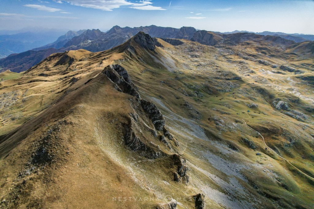 Ponovni susret sa ovim predelima je podjednako impresivan kao i prvi, pre tačno tri godine. Dočekuje nas zlatna boja pašnjaka kakvu samo oktobar može da priredi. Atmosfera će uskoro biti upotpunjena i visokim oblacima uz južni vetar na grebenu, tek toliko da nas podseti da smo na visinama u i oko 2000m.