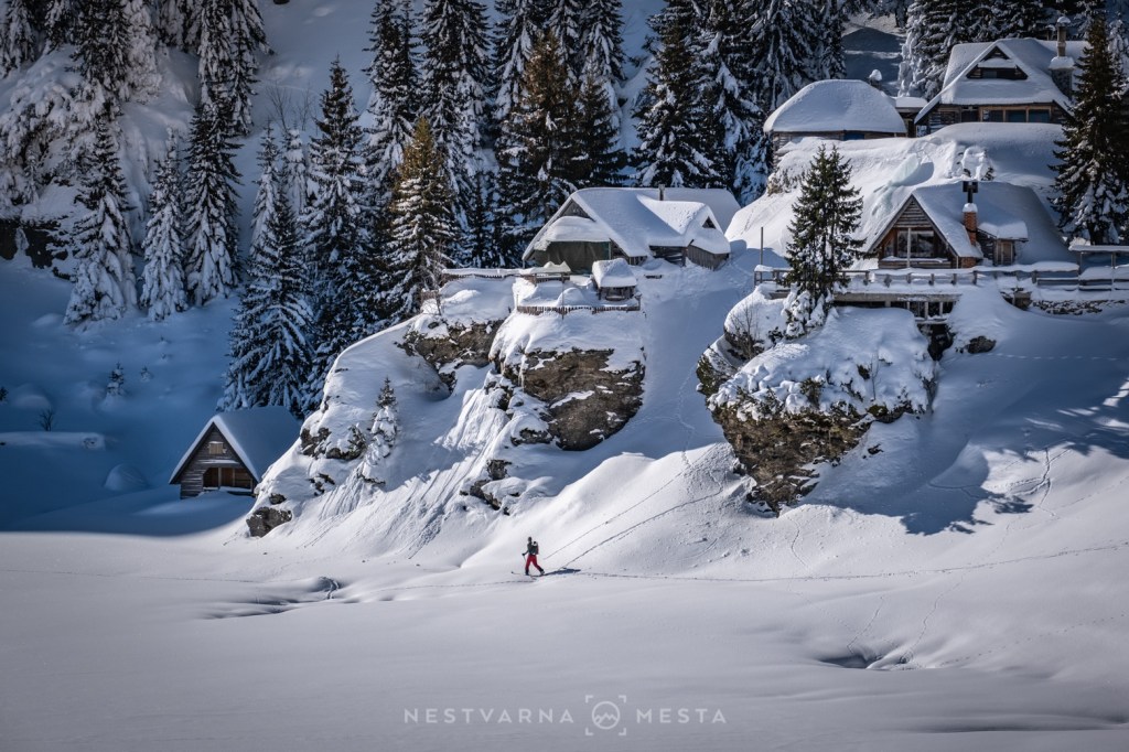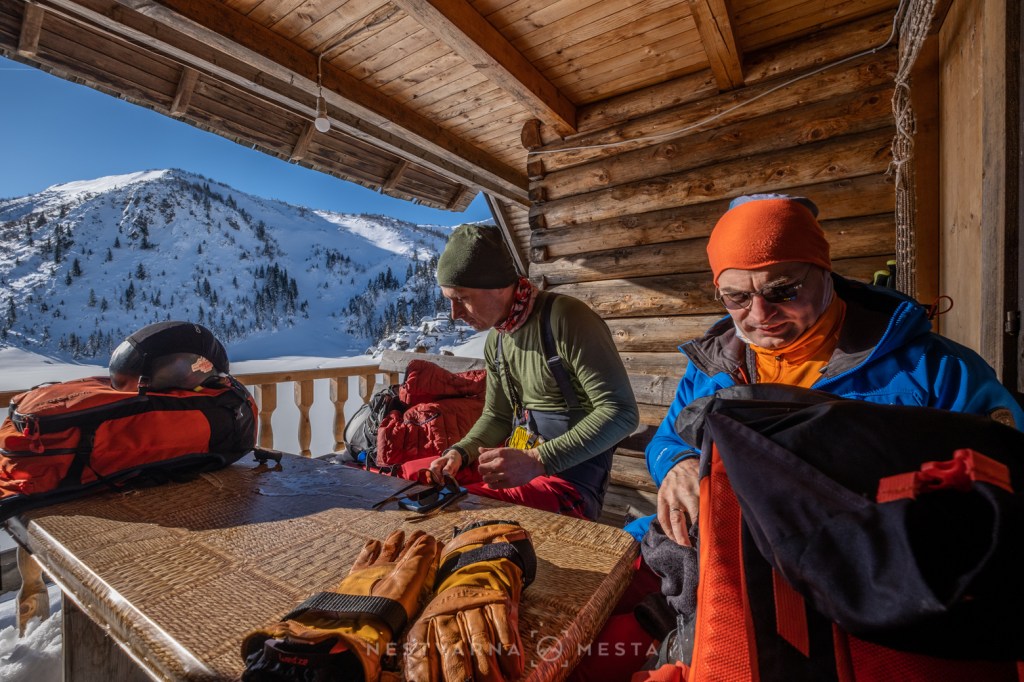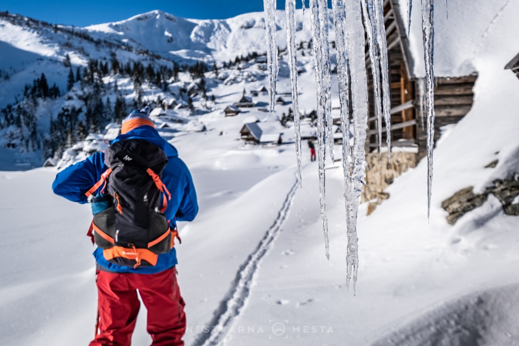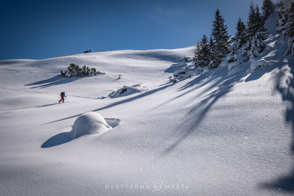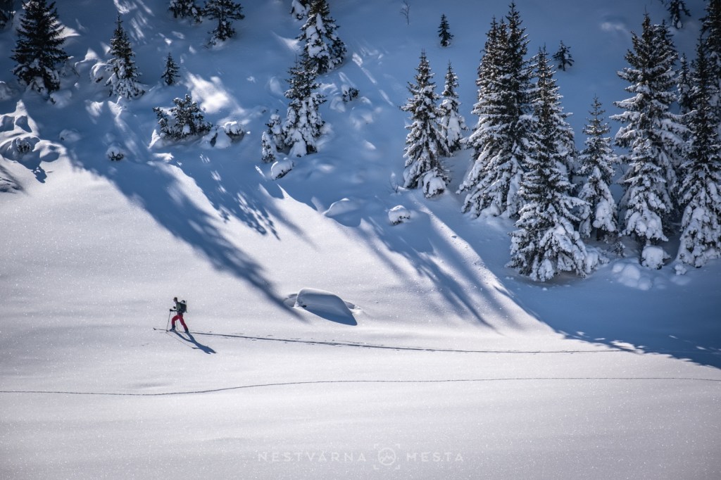 Silaskom sa asfalta, uspeli smo da savladamo još nekoliko kilometara zavejanog puta. Već na prvo koprcanje vozila u snegu, odlučili smo da ne rizikujemo i nastavili na skijama – nadmorska visina našeg ishodišta tako je iznosila skromnih 950m. Prvih pola sata smo sledili kolski put po snegu, da bismo se kod doma Jezernica uključili na šumski single-trail koji prati klisuru istoimenog potoka.