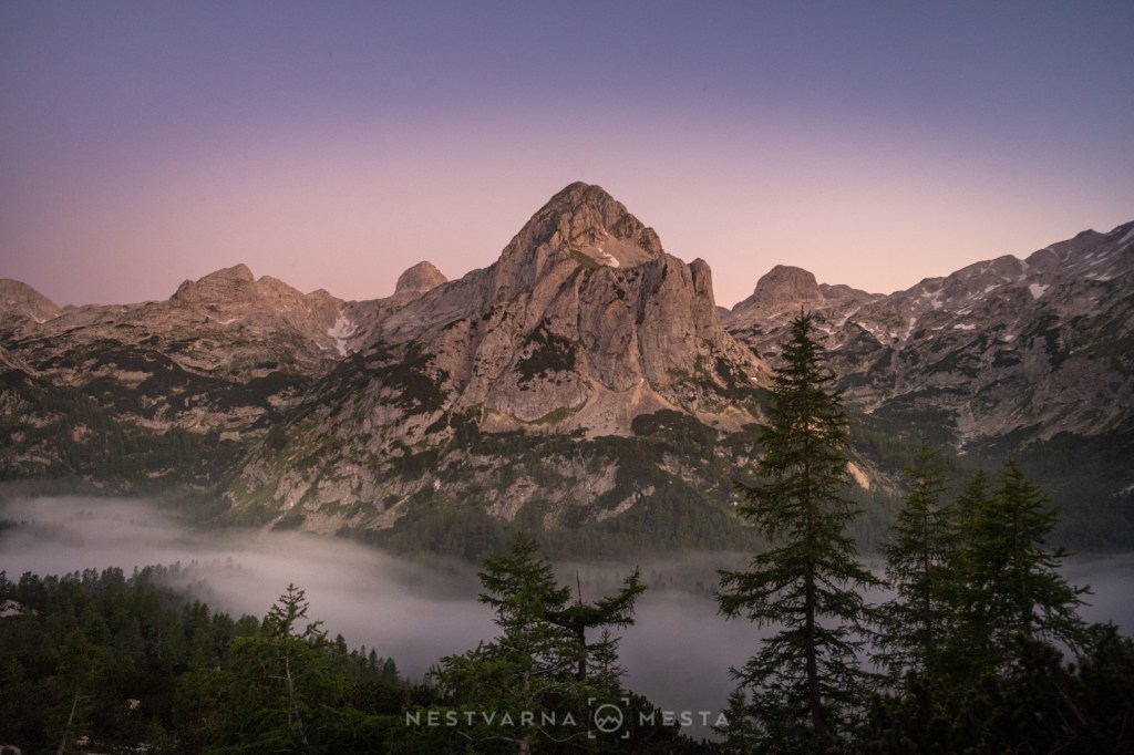 Odakle su lepši pogledi na Triglav? Tosc ili Velje polje? Teško je reći. Bila je prava dilema gde čekati jutro, i Velo polje je prevagnulo. Nisam odoleo neočekivanim niskim oblacima u svitanje pod markantnim Mišeljim vrhom.