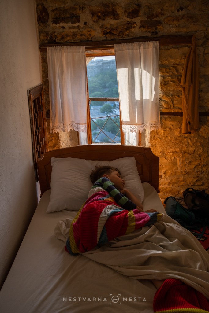 Za smeštaj u Đirokastri obavezno izabrati neki od konaka po brdima iznad grada. Biće tu i lutanja da se pronađe lokacija u dolaznom danu. Mi smo pristigli umorni, kasno uveče i taj zadatak sam sa zadovoljstvom prepustio lokalnom taksisti. Čak i on nije bio siguran kuda da vozi da bi se kroz lavirint uskih kamenih ulica uspeo do pansiona Salarija – otomanskom zdanju starom 130 godina sa kog puca pogled na tvrđavu i čaršiju pod njom.