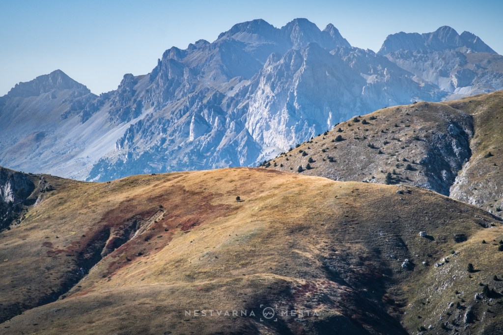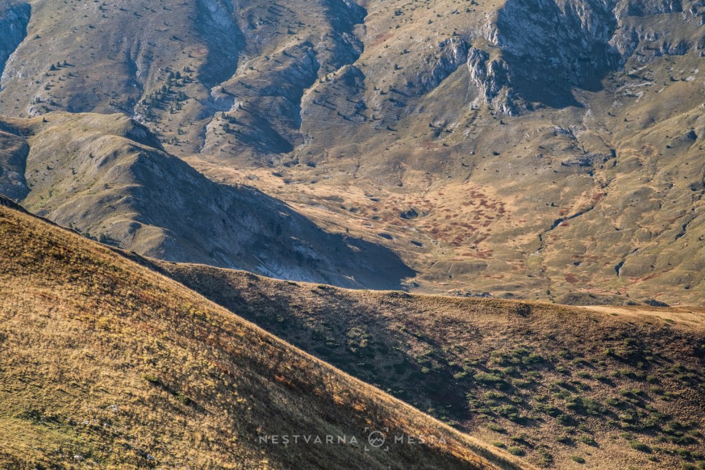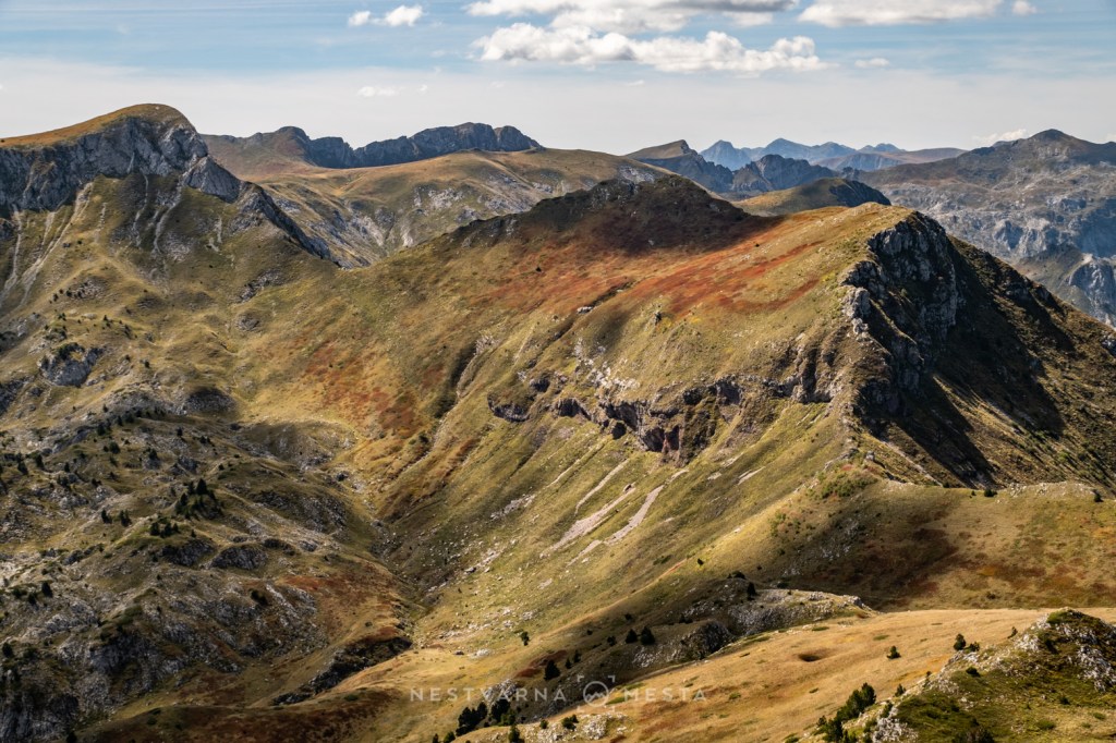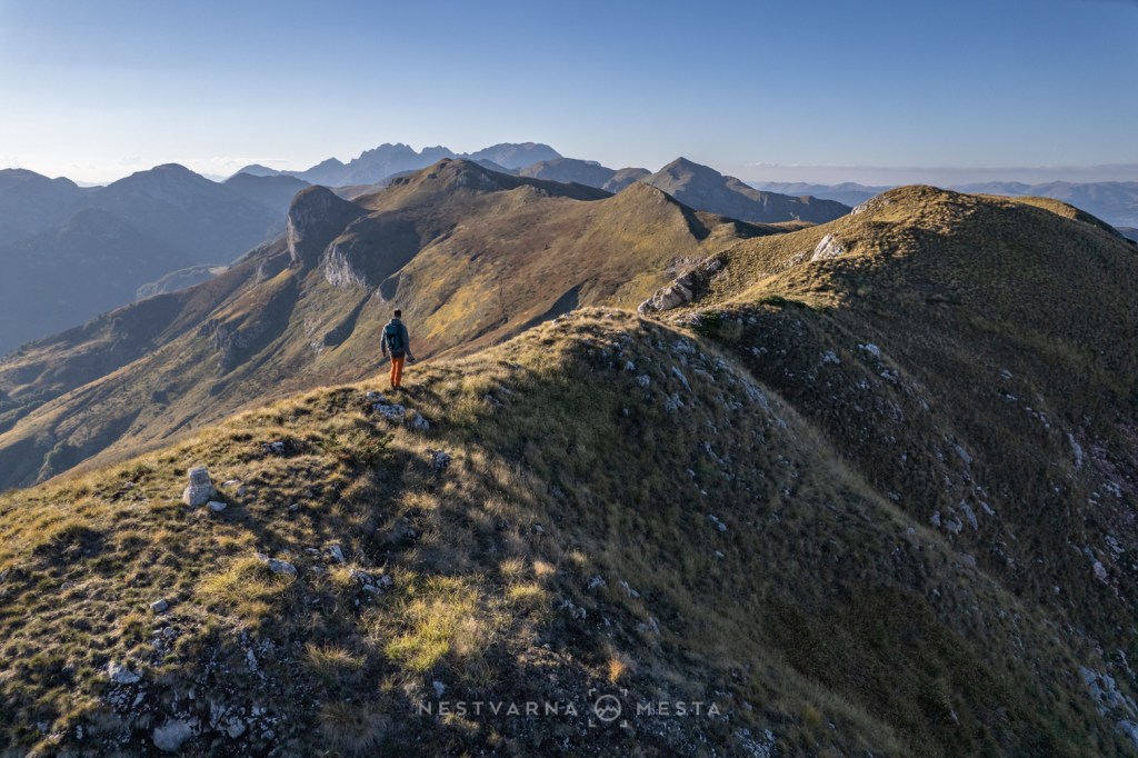 Komovi se sve vreme hoda monumentalno ukazuju po severnoj strani. Ispod nas po južnoj strani je poslednje dvorište Albanije, nestvarna udolina Ljugu i Dolit. Ka istoku se otvara sekcija grebena kojom sam prošao prethodnog dana.