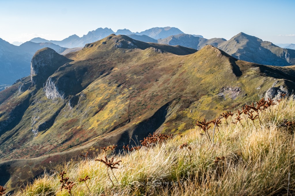 Zahvaljujući lakom terenu za kretanje, vremena će biti dovoljno zaključujem, te produžavam dalje ka Tomovoj glavi (2123m) i Biogradu (2100m). Ja na istok, sunce na zapad. Gorostastne Komove na horizontu uskoro će zameniti dugi venac Prokletija.