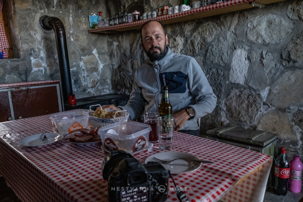 Napuštamo greben približno na istoj tački, na kojoj sam se prethodnog dana uključio na isti. Silazimo u katun Rupa, gde nas uz rakiju, sir i vruć domaći hleb dočekuje Mladenova rodbina i prijatelji.