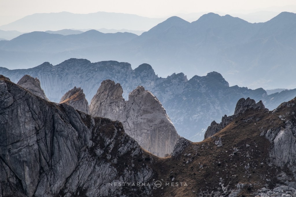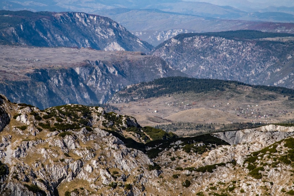 I kao što rekoh nema vrha koji se odavde ne vidi. Šljemena krase južne vizure ispred kojih Terzin bogaz blista na oktobarskom svetlu koje ga obasjava pod savršenim uglom. Iza Mininog bogaza proviruju Zupci. Ka zapadu prepoznajem Raklje i Pivsku planinicu, na severu je selo Mala Crna gora nad kanjonima Sušice i Tare. Mozaik durmitorskih vrhova, dolova i kanjona čini se potpun sa ovog mesta.