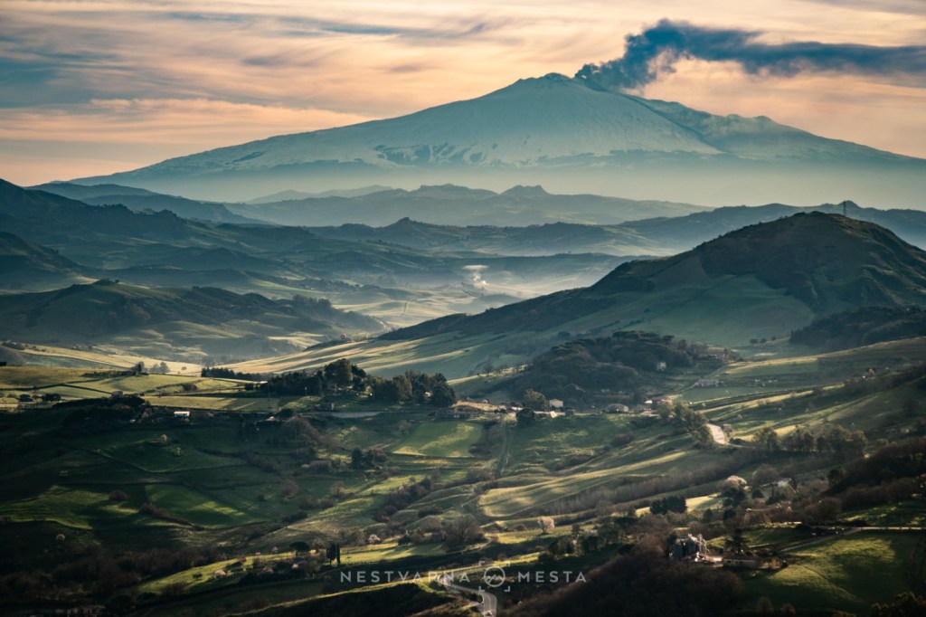 Nakon duge vožnje u mrak, naredno jutro smo osvanuli visoko, u zemlji barona, u srcu pastoralne, ruralne Sicilije. Zelena boja pašnjaka, cvat voćki u februaru, i slatke pomorandže za ubrati sa prozora. Sve to na 1100 metara nadmorske. Na horizontu – snegom pokriveni vulkan iz koga kulja gust crni dim.