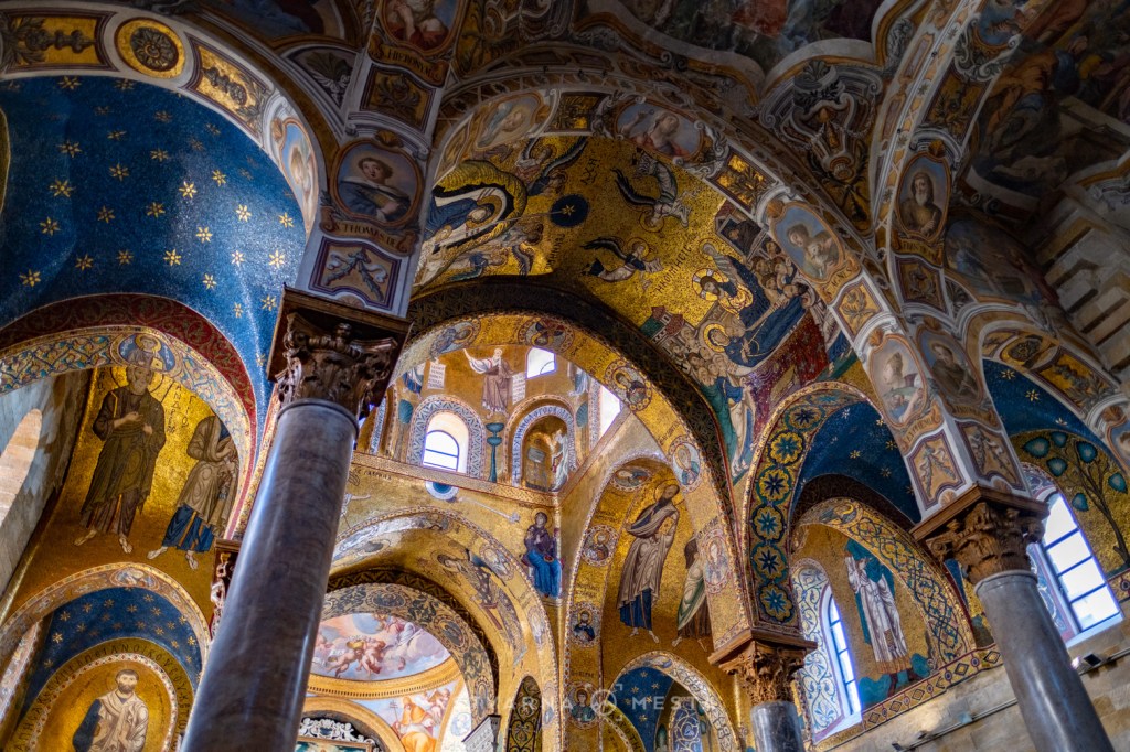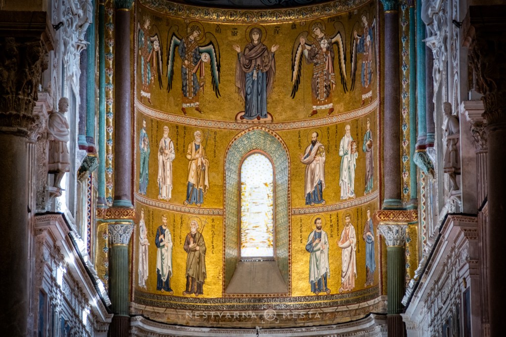 Posle pijace, vredi se prepustiti istorijskom vremeplovu. Vraćam se ponovo na početak priče o Siciliji: nema ko ovde traga ostavio nije, ali je normanska epoha sa svojom inkluzivnom politikom i unikatnim sinkretizmom istočnog i zapadnog krsta, najupečatljivija. Moćni vizantijski mozaici se nalaze u crkvi San Cattaldo i Normanskoj palati.