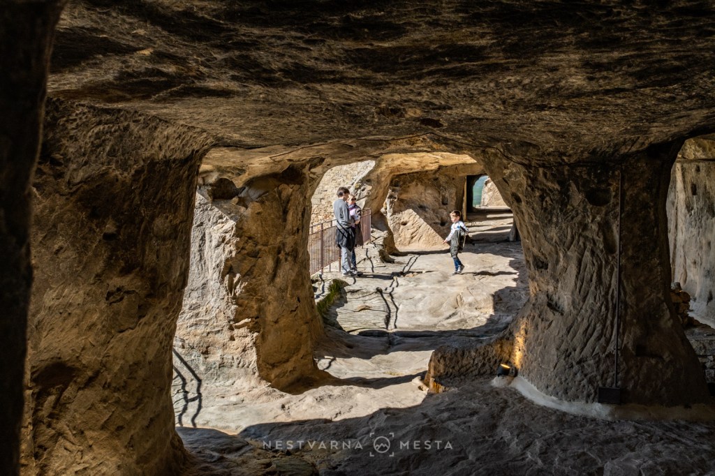 Ispod vidljivog grada pod zemljom leži čitava mreža pećina i katakombi. Dok je plemsto živelo u palatama i utvrđenjima poviše, stanovništo juga Italije je koristeći pogodnosti terena (“il tufo”) često obitavalo u pećinama (“grottos”) i to zajedno sa stokom. Tragovi tog načina života (troglodizam) danas su najbolje očuvani u gradu Matera u Pulji (Sassi di Matera).