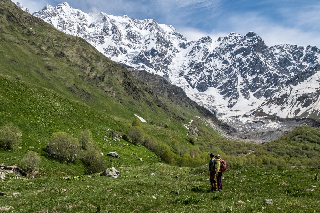 Početak je juna i padine iznad 2500m visine su zavisno od svoje orijentacije i dalje pod snegom. Za ambicioznije planinarske ciljeve isplati se doći u Svaneti u nešto kasnijem terminu a nakon kalendarskog početka leta. Umesto u kraljevstvo snega i leda, uputili smo se na travnati vis Guri (2960m) iznad Ušgulija. 900m visinski dele vršni greben i selo u podnožju, sa koga se, kada oblaci to dozvole, otvaraju pogledi ka moćnom zidu prekoputa, isprecanom brojnim glečerima.