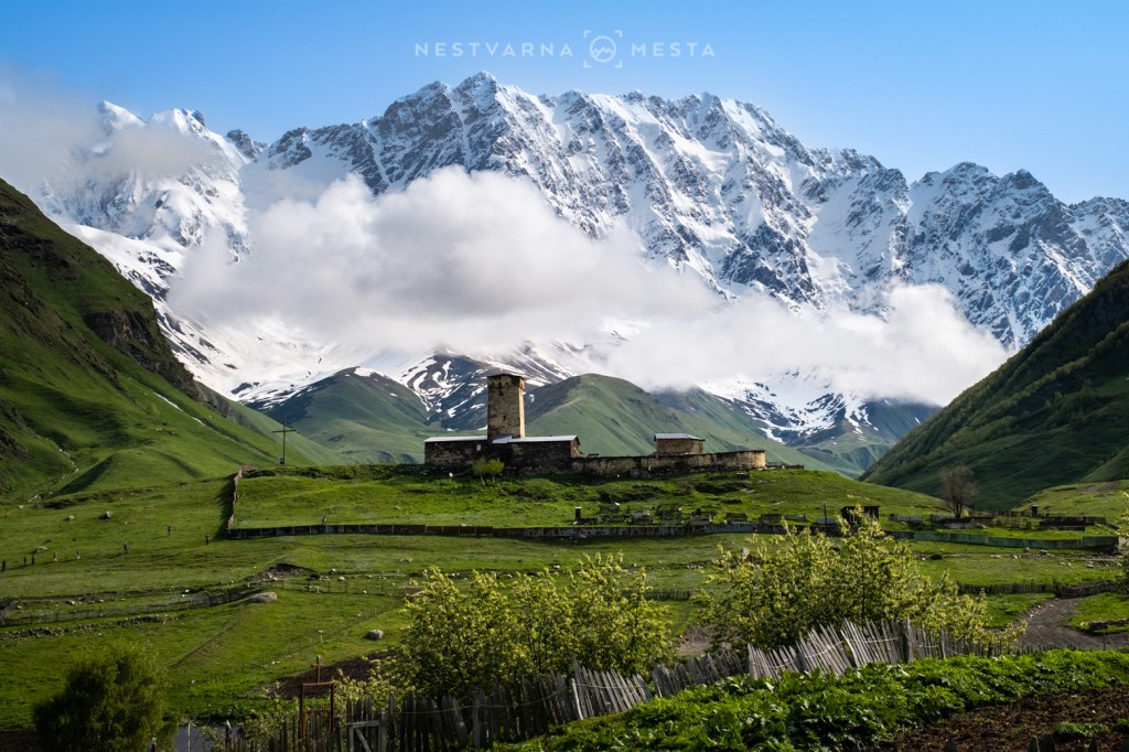 Selima poput ovog u Gornjem Svanetiju je svanulo od kako je višednevna planinarska transverzala od Mestije do Ušgulija dospela na bucket-liste hajkerskih komuna. Gruzijski Peaks-of-the-Balkans upravo prolazi kroz ovo, do skoro od Boga zaboravljeno selo pod oblacima. Ko ne želi da dođe peške, mora da računa na deset kilometara zahtevnog planinskog puta uz obaveznu upotrebu pravog terenskog vozila.