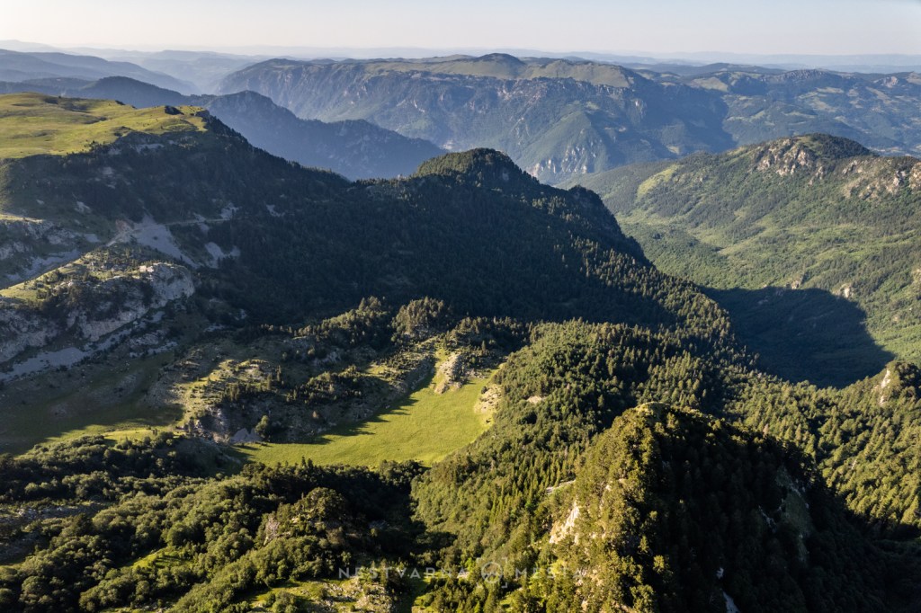 Ovo je četvrta poseta Sinjavini ali prva u zelenim junskim tonovima. Prvog dana smo izašli na Jablanov vrh 2203m od katuna Grkovo. Naredno jutro sam popeo Gusar 1907m, istureni vrh Sinjavine prema mojkovačkom delu ove planine. I konačno, iskoristili smo blagodeti novog asfaltnog puta koji kroz dolinu Donje i Gornje Štitarice vodi do duhovnog središta ovog dela Crne Gore – do hodočasne crkve Ružice na Sinjajevini.