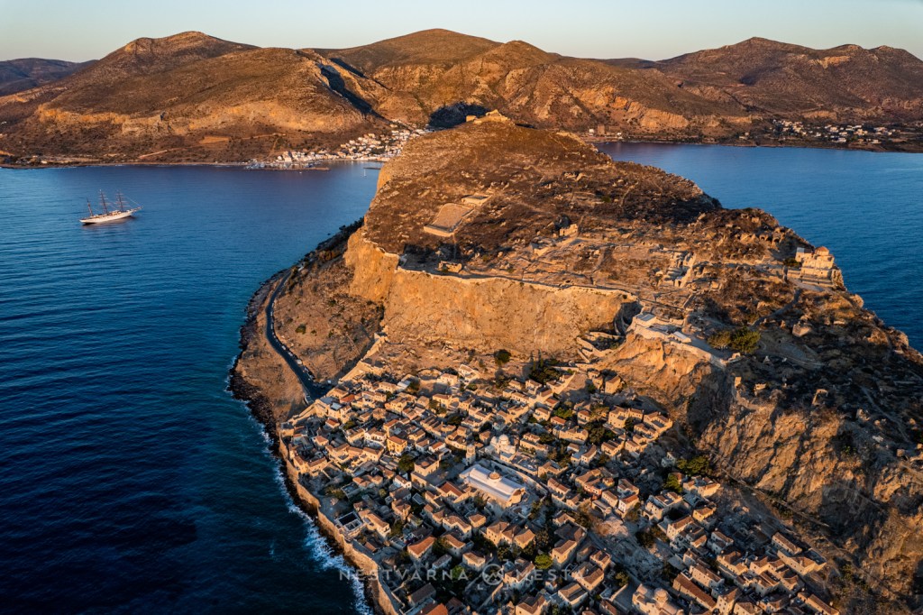 Džinovska hrid izranja iz mračnih voda Egeja i spojena je sa kopnom preko tankog spruda (tombolo). Pogled iz vazduha naglašava ovu neobičnu geografsku strukturu, kao stvorenu za strateško utvđenje koje će pružiti zaštitu od upada Varvara i gusara. A takvih je upada na Peloponezu bilo naročito često, pogotovo u ranom srednjem veku. Goti pod Alarihom, najezda Slovena, česti ratovi Vizantije sa gramzivim susedima, odlika su ovog mračnog perioda Zapadne civilizacije.