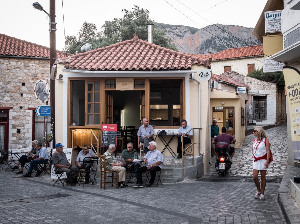 Večernja atmosfera u mezohoriju je posebna – miks patrijahalne, tradicionalne Grčke i mladalačke penjačke pasije koju donose gosti sa celog kontinenta.