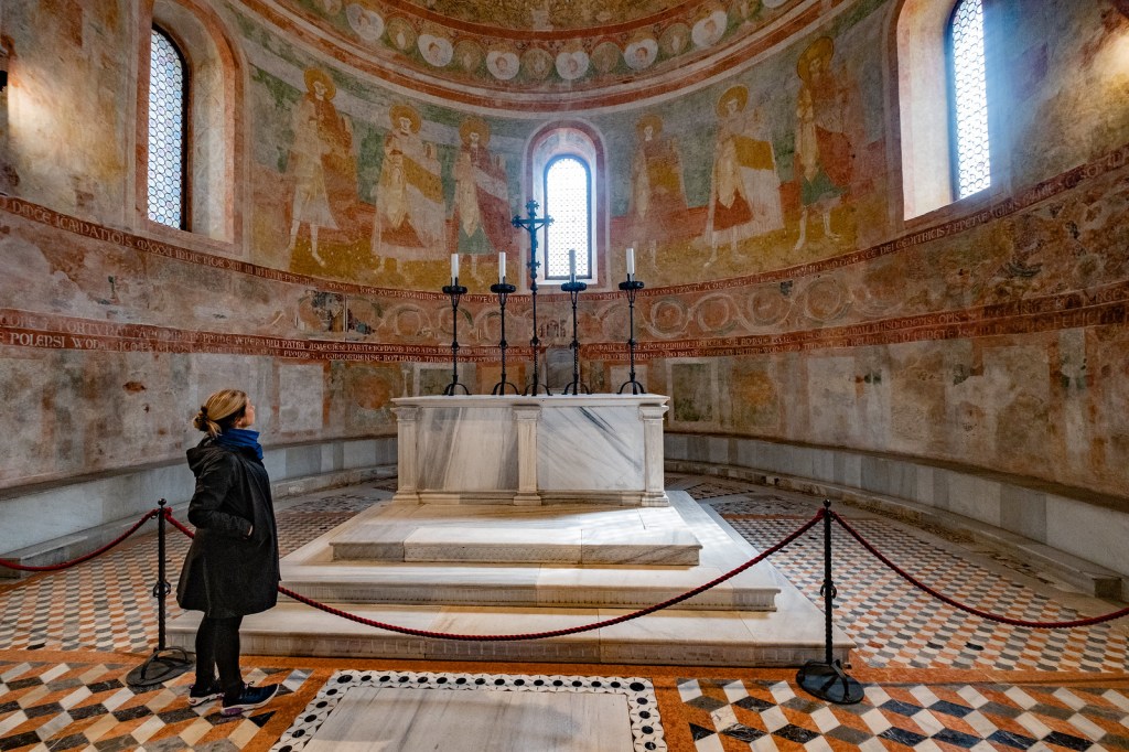 Nazad u dolini, bliže civilizacijskim tokovima, ruine i kolonade svedoče o slavi jednog grada. Na ušću reke Natisone u Jadransko more, u pozno-antička vremena nalazio se veliki i značajan grad: Aquileia. Ovde su pre najezde Huna i Langobarda stolovali neki od prvih hrišćanskih arhieskopa.