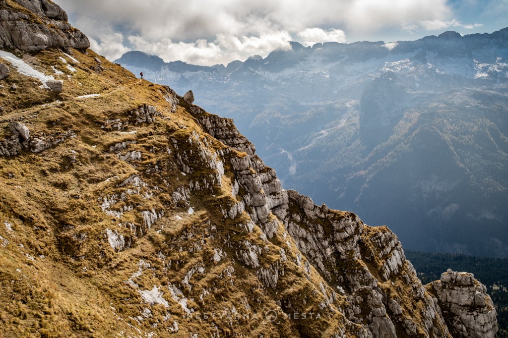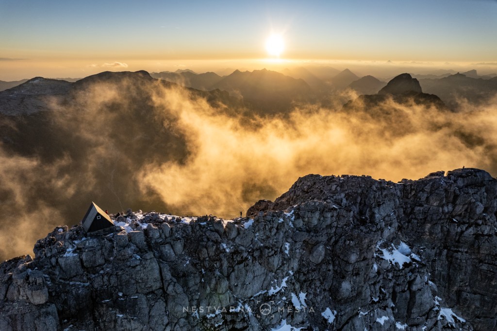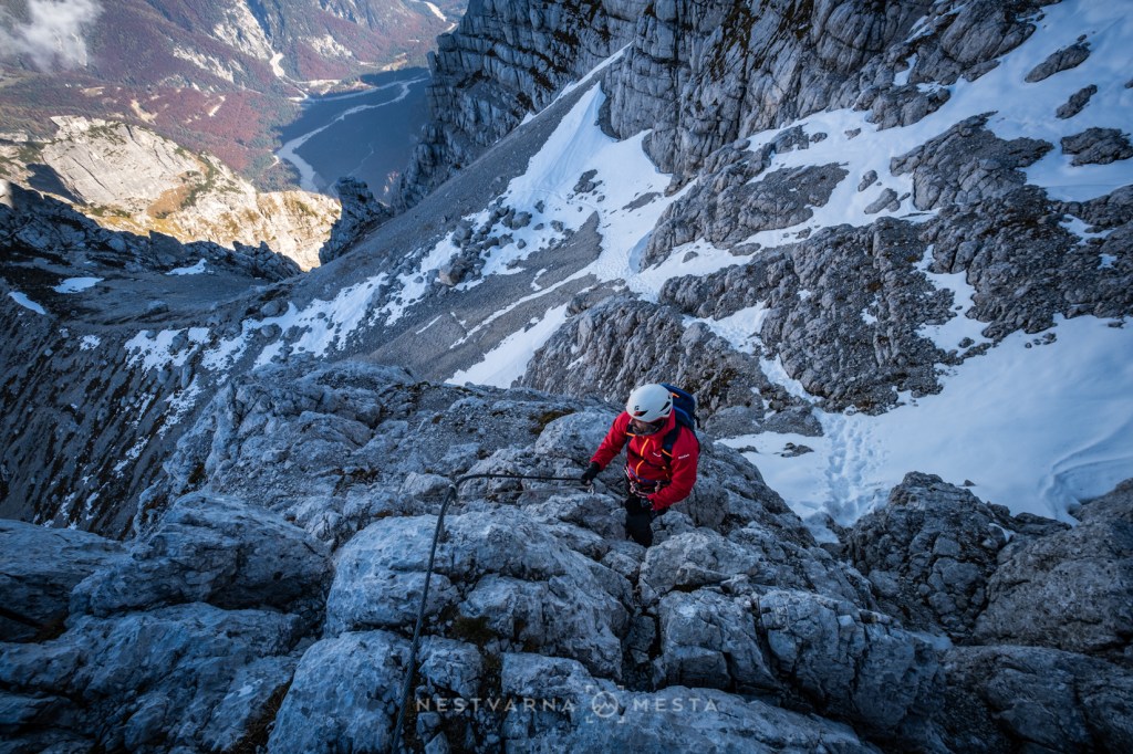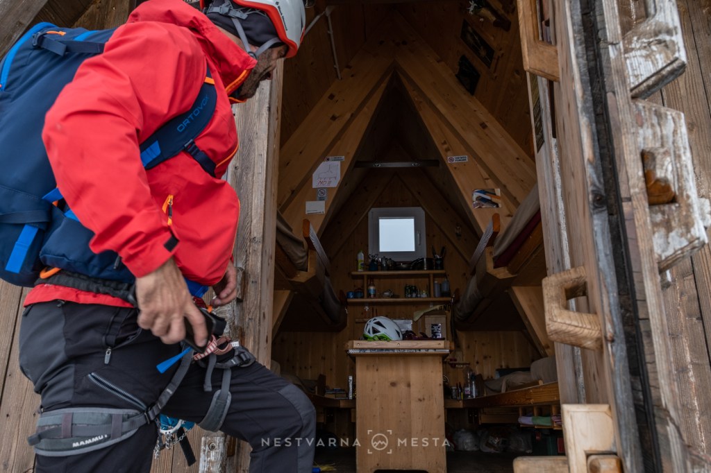 Kroz kamene police i kuloare vešto je provučena (srednje) zahtevna via ferata sa devet sektora. Sredina oktobra je, te sneg ne predstavlja iznenađenje na ovim visinama. U osenčenom delu planine navlačimo i dereze i ulazimo u oblak. Natimareni teškim rančevima, nakon 4 sata uspona, stižemo u bivak lociran na nestvarnom mestu.