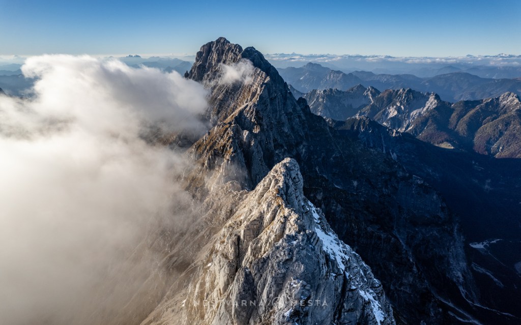 Juče smo se penjali kroz hladni oblak, sada upijamo toplinu osunčanog grebena – sve do ponovnog silaska u mrzli kuloar. Oblaci su zaštitni znak Montaža i opet su nas progutali, samo ovaj put na nižoj visini.