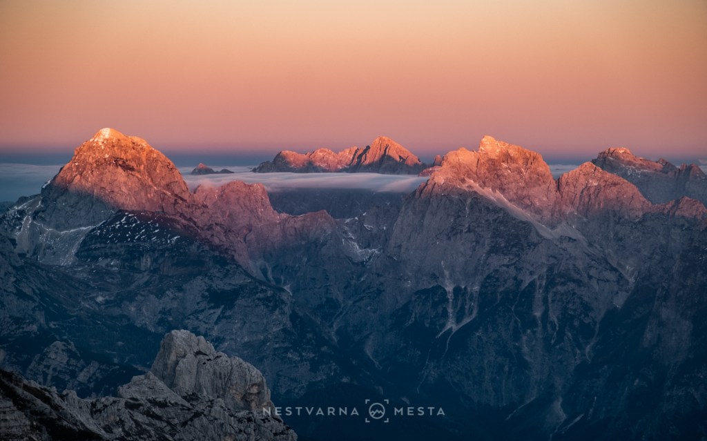 I dok je tramonto razotkrio lepotu alpskog grebena, sunce sa istoka baciće posebno svetlo kroz more vrhova u susednoj Sloveniji i Austriji.