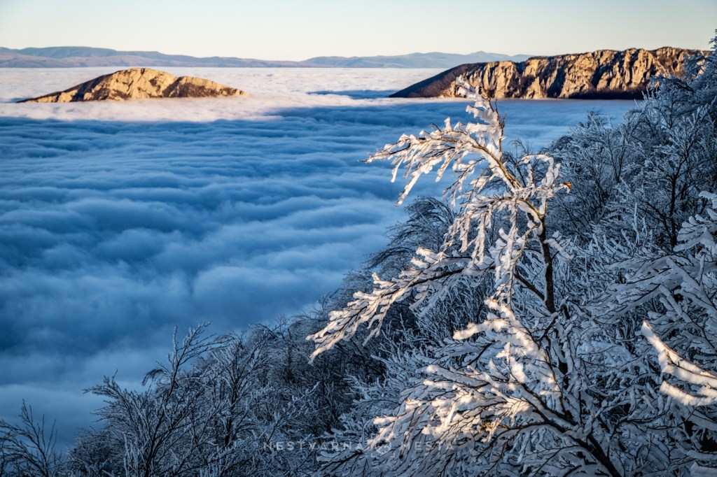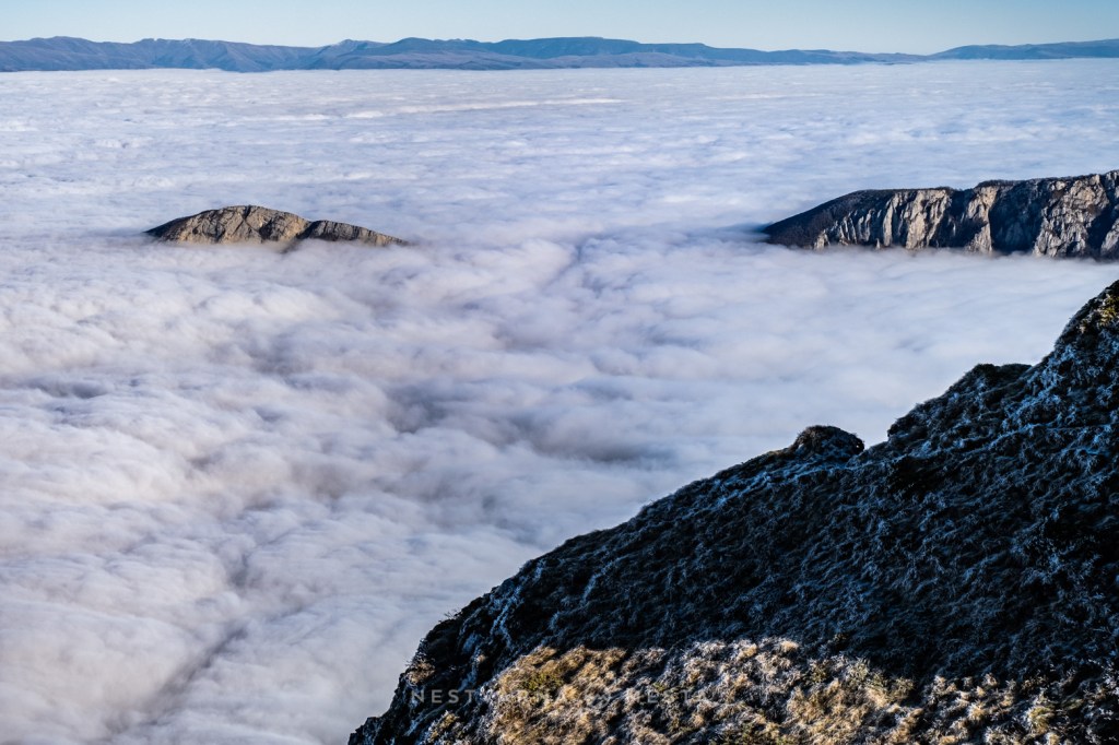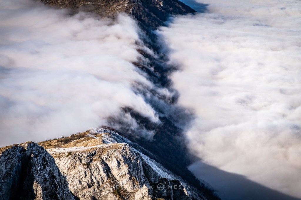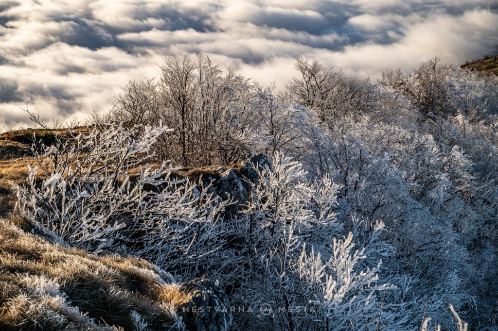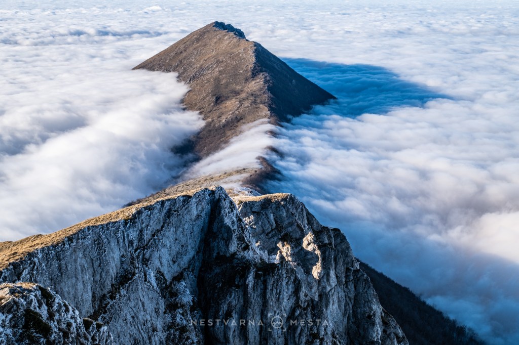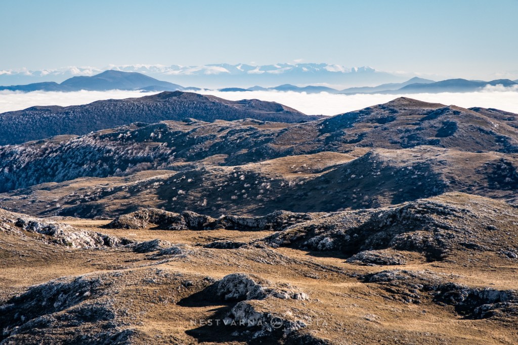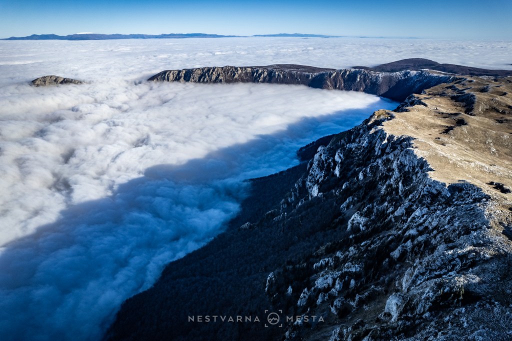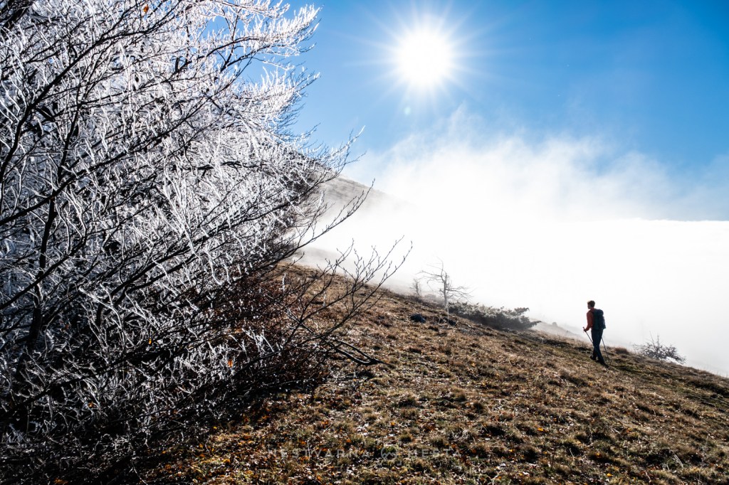 Neobično gust oblak ispod nas stvara iluziju da smo negde znatno više od 1800 metara iznad mora. I sam izlazak na grebensku čistotu kroz šumu, probijajući oblak, predstavljao je uzbudljiv čin. A oblak nije slučajno tu, na kraju šumskog pojasa. Jer, bukova šuma je mnogo veći generator vlage od niskog rastinja, a zimskog sunca je na pregibu, pogotovo onom severnom, puno manje nego na izloženoj vetrometini grebena.