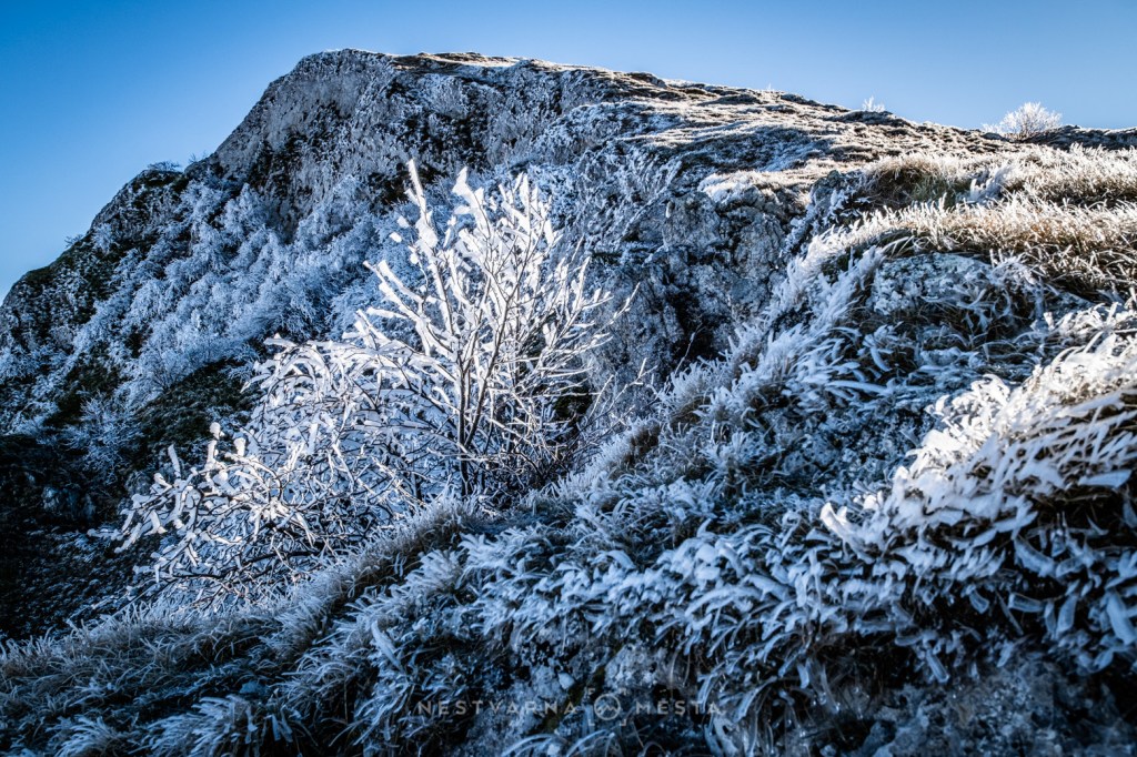 Pojas vedrine je pred naš dolazak dohvatio i jak jutarnji mraz, tako da su najviši delovi šume uz sam greben osvanuli ukrašeni zimskom dekoracijom snežnih i ledenih kristala. Kakva dobrodošlica i ispraćaj za pamćenje na Devojačkom grobu.